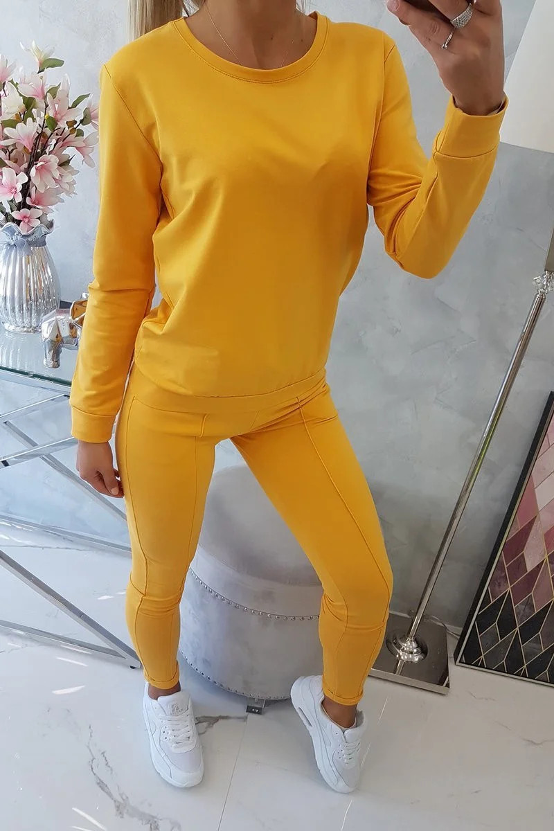 Představujeme vám sadu mikiny a kalhot. Obyčejná mikina bez potisků. Kalhoty s kapsami a zavazováním v pase. Sada je vyrobena z vysoce kvalitního materiálu. Velikost je univerzální a vyhovuje dámám velikosti S, M nebo L.