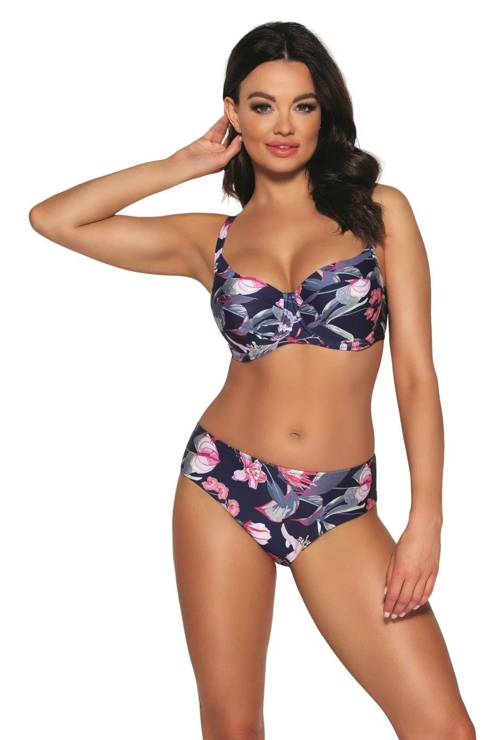 Horní díl plavek 173 Flowers AVA - tmavě modrá barva - z velmi kvalitního vzorovaného mikrovlákna - vyztužené košíčky - s kosticemi - nastavitelná a neodepínatelná ramínka - zapínání vzaduMateriálové složení: 80% polyamid + 20% elastan