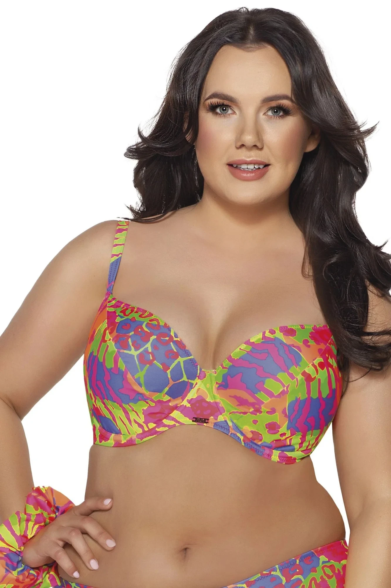 Horní díl plavek 188 Fluo plus AVA - vícebarevná barva - pestrý vzor - měkké košíčky - podšité síťovinou - nastavitelná a neodepínatelná ramínka