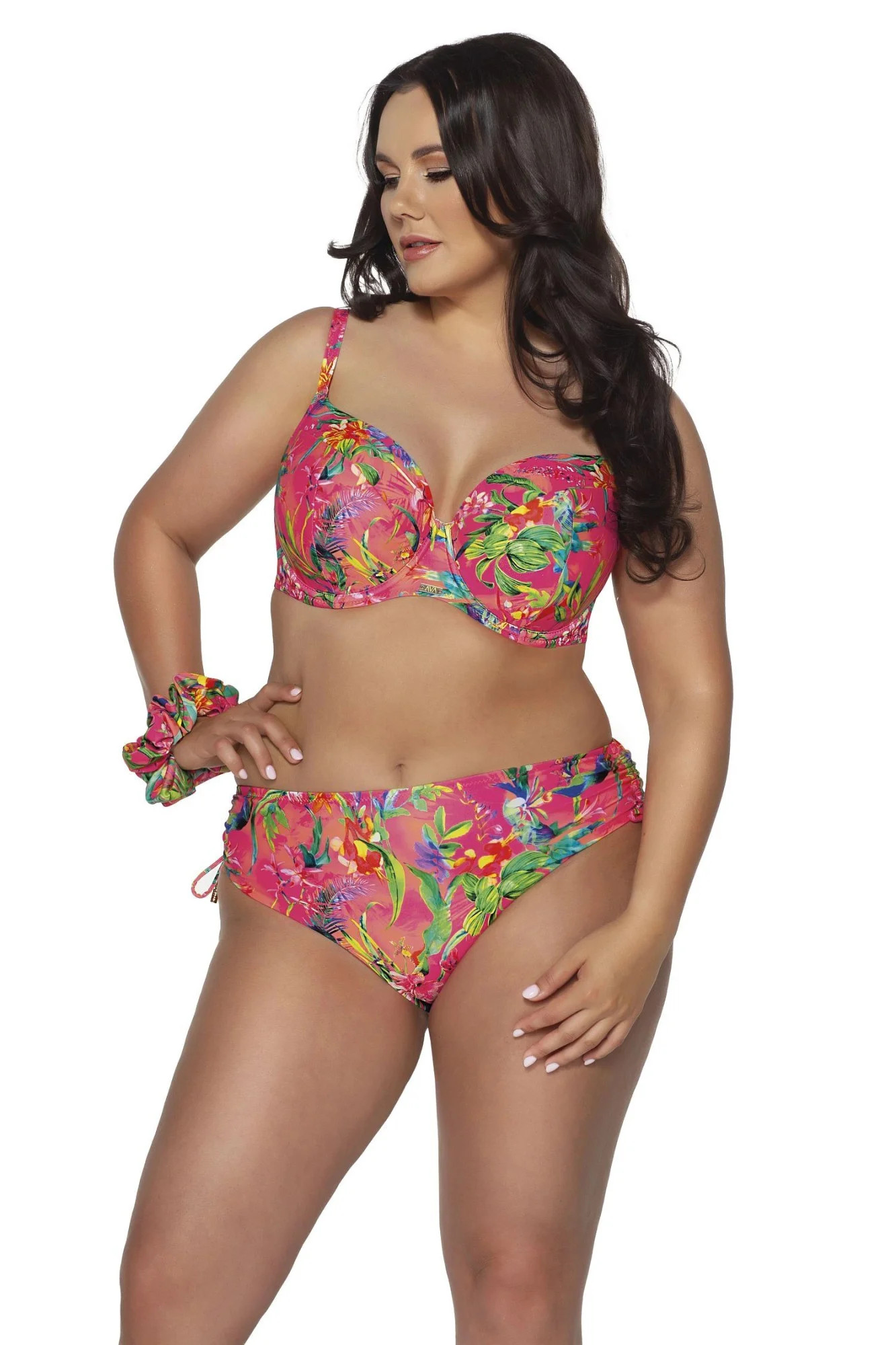Horní díl plavek 191 Raspberry charm AVA - elastická látka z barevného mikrovlákna - polstrované košíčky s barevným potiskem - obvod lemovaný síťovinou - zapínání na kovovou sponu - nastavitelná a neodpínatelná ramínka