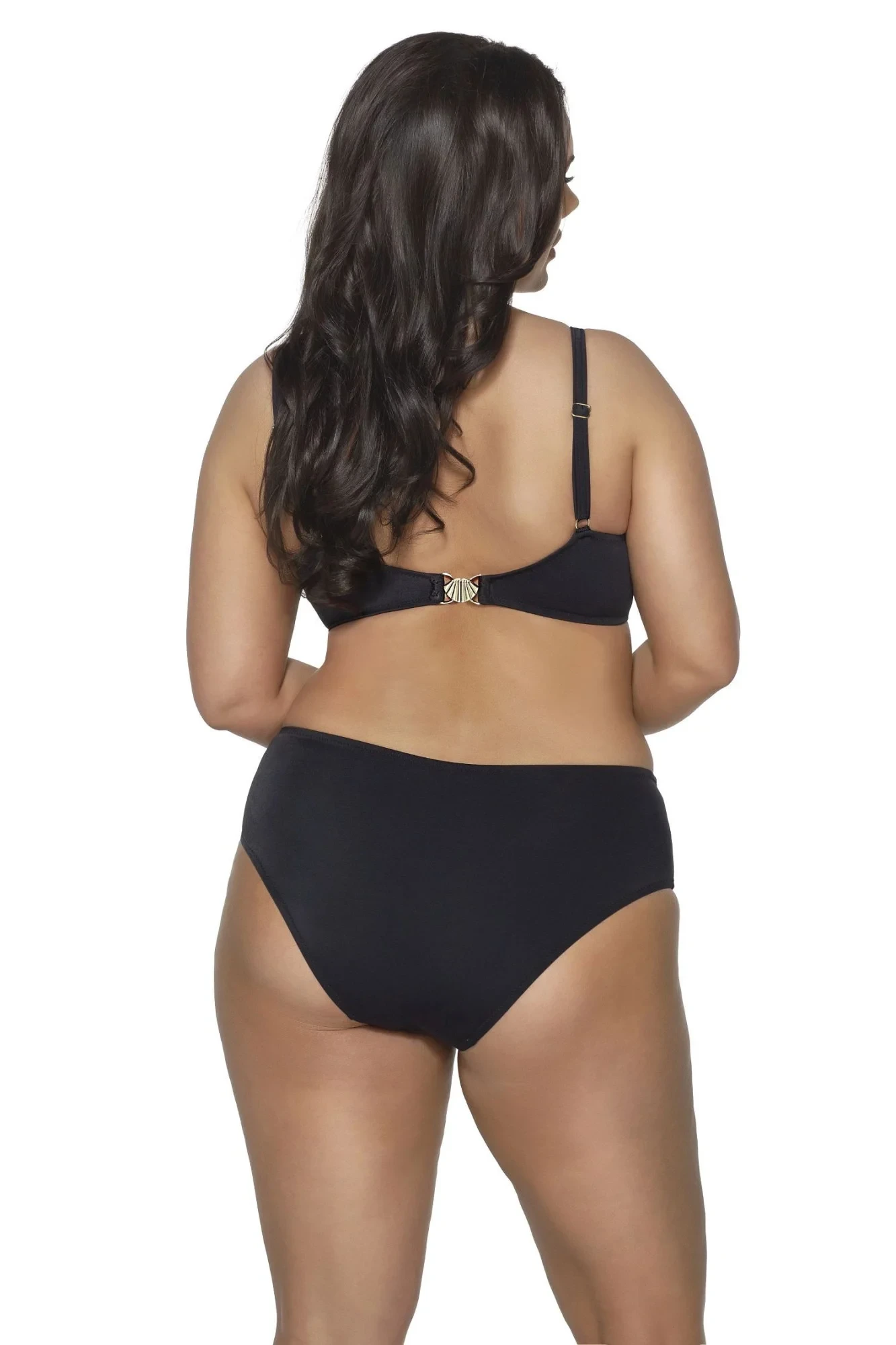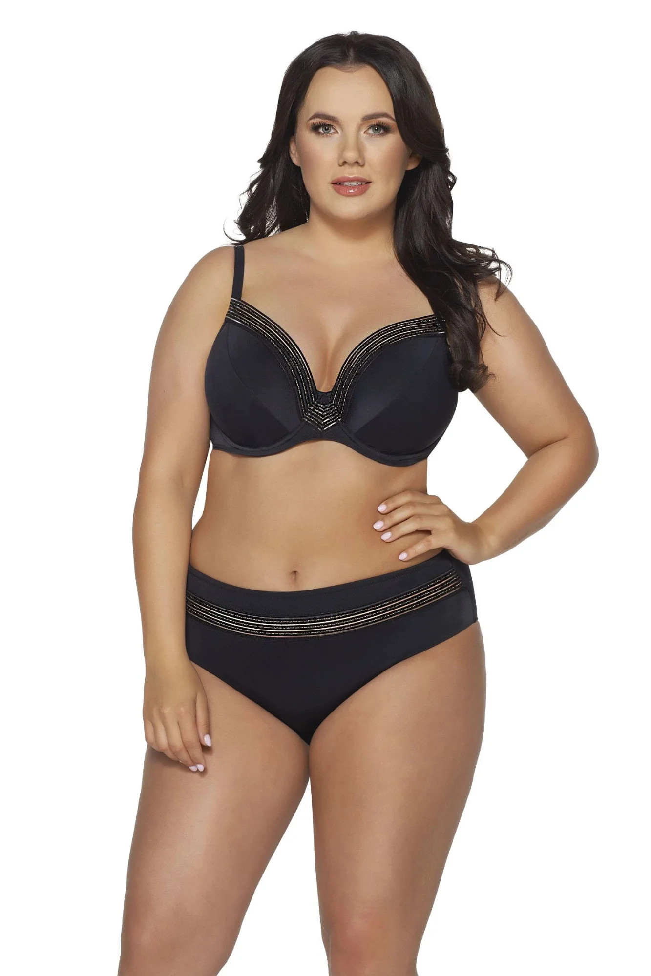 Horní díl plavek 209 AVA - černá barva - z velmi kvalitního mikrovlákna - měkké košíčky - s kosticemi - zdobené elastickými páskami s lesklou nití - nastavitelná a neodepínatelná ramínka - zapínání vzadu