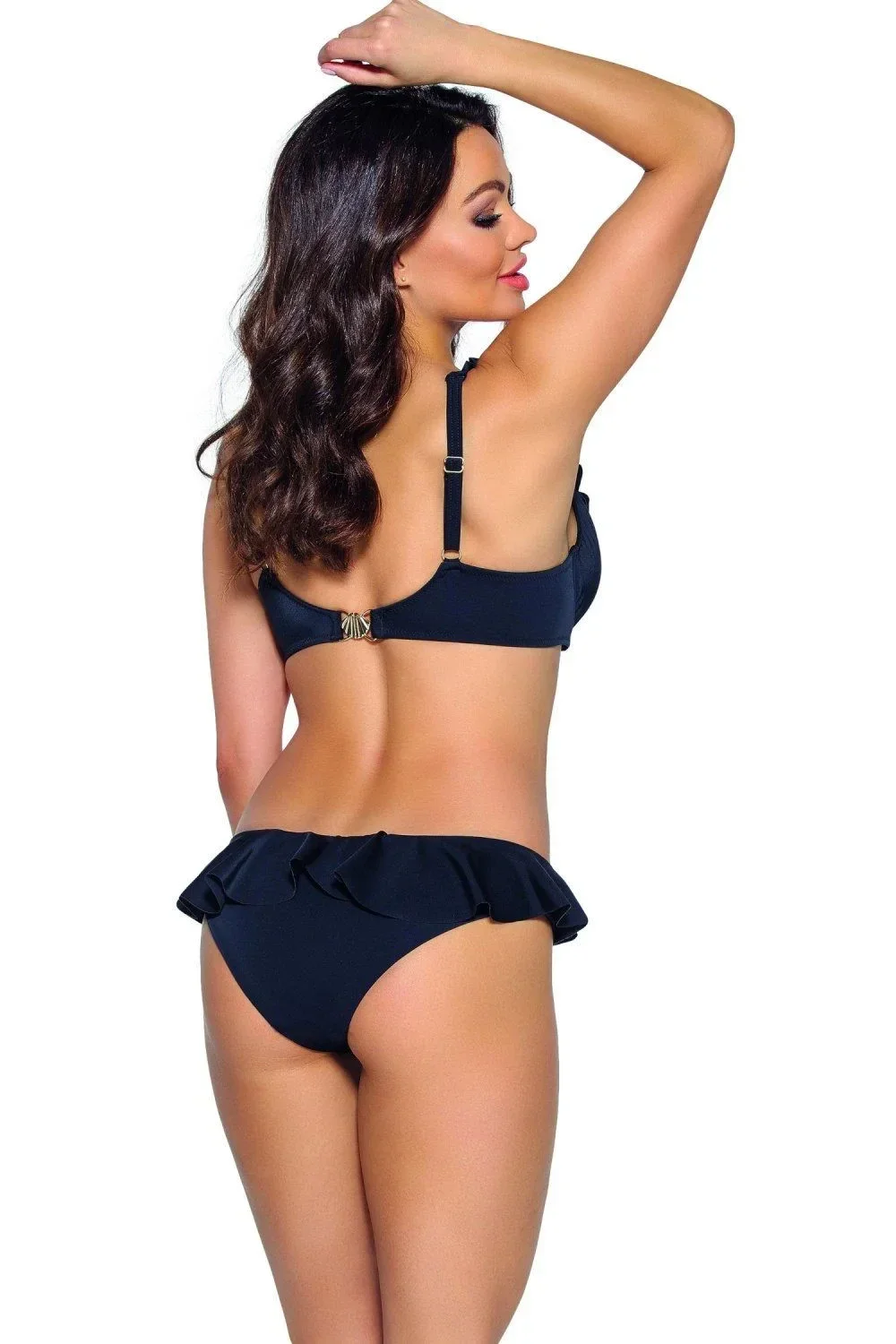 Horní díl plavek 213 AVA - černá barva - z velmi kvalitního mikrovlákna - měkké košíčky - s kosticemi - výstřih a ramínka zdobená volánky - nastavitelná ramínka - zapínání vzaduMateriálové složení: 80% polyamid + 20% elastan