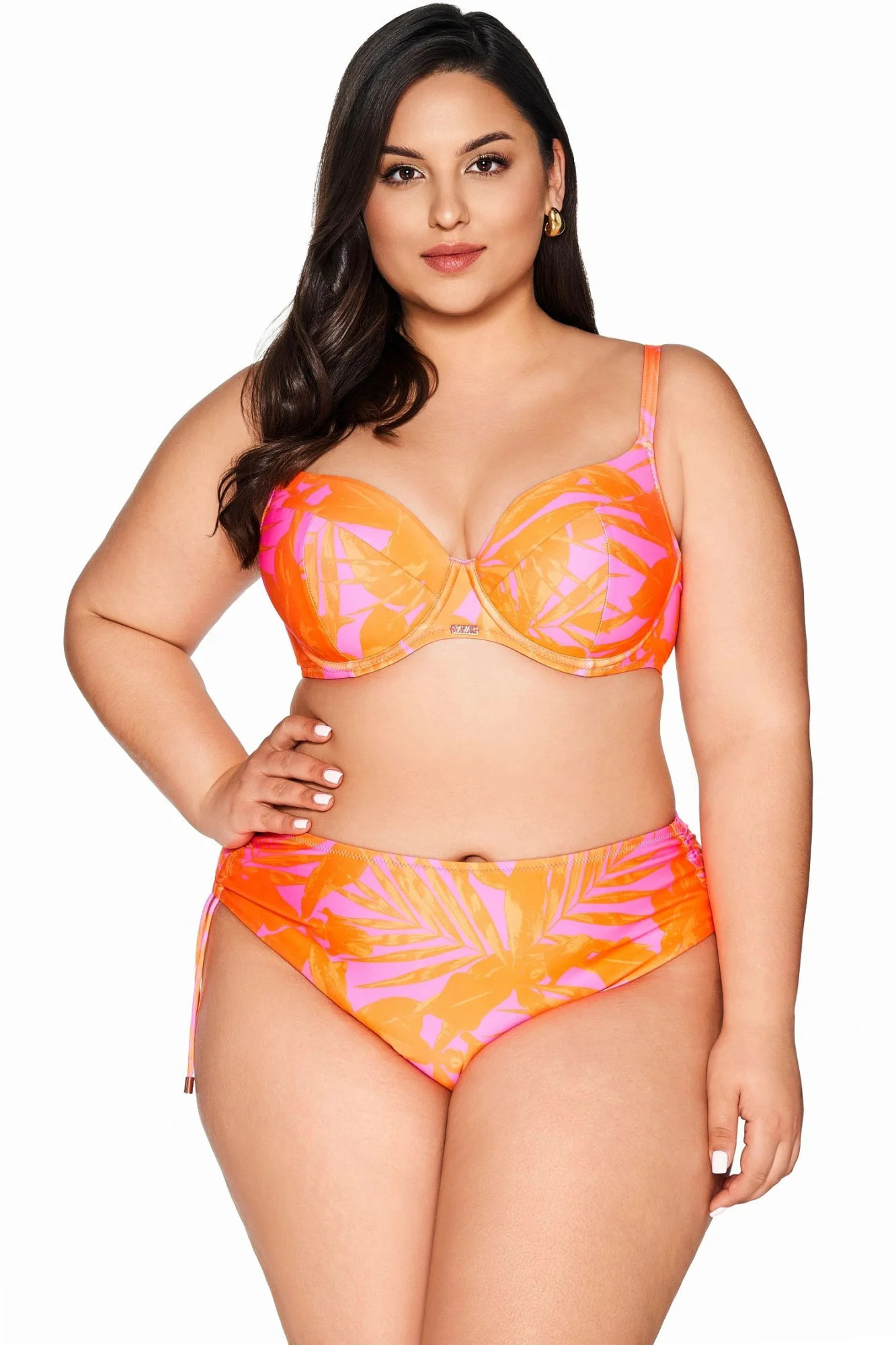 Horní díl plavek 214 orange AVA - oranžová barva - vyztužené košíčky - nastavitelná ramínka - výrazný vzor