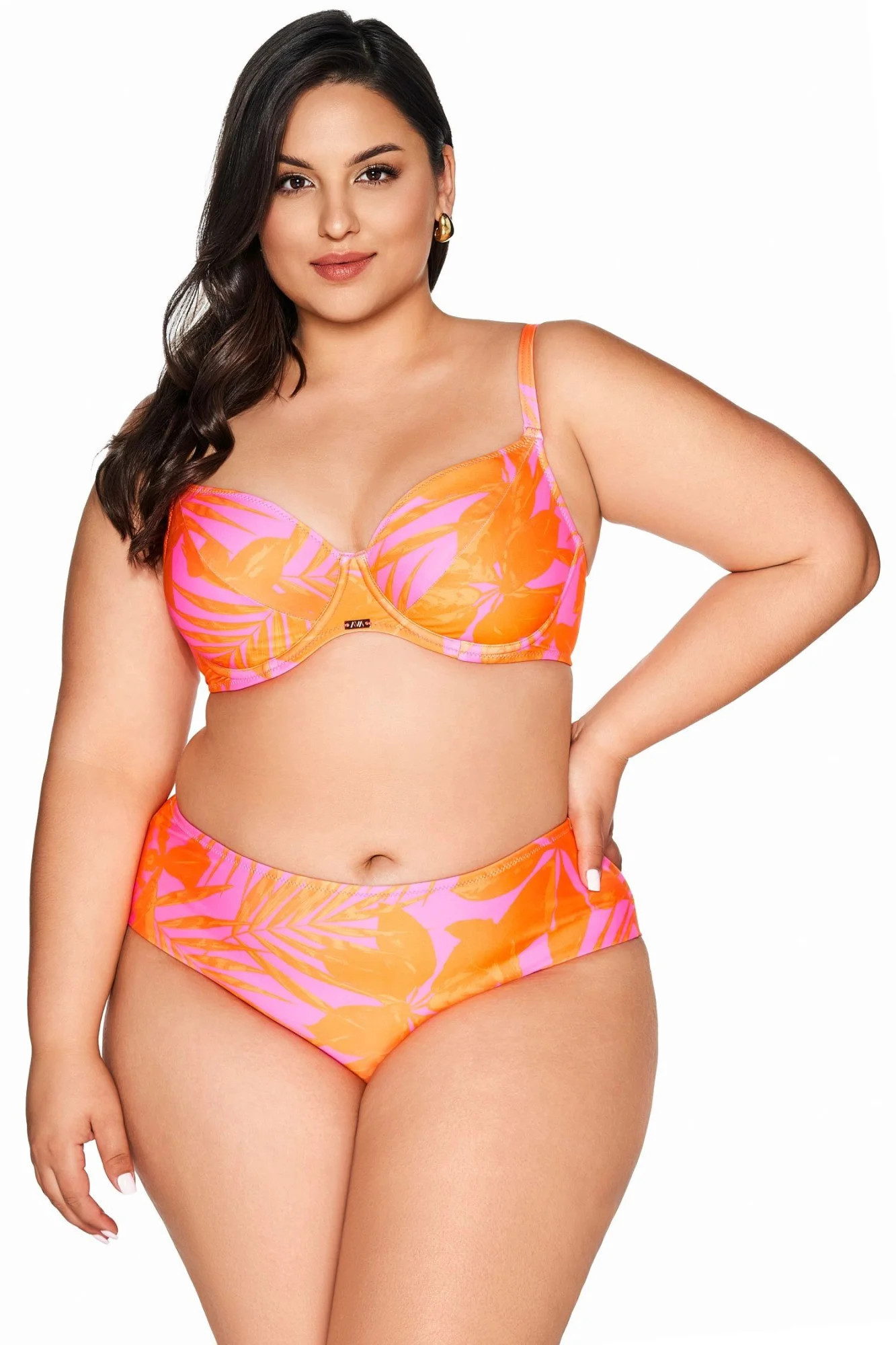 Horní díl plavek 215 tangerine plus AVA - oranžová barva - zapínání na zádech - měkké košíčky s kosticí - nastavitelná ramínka