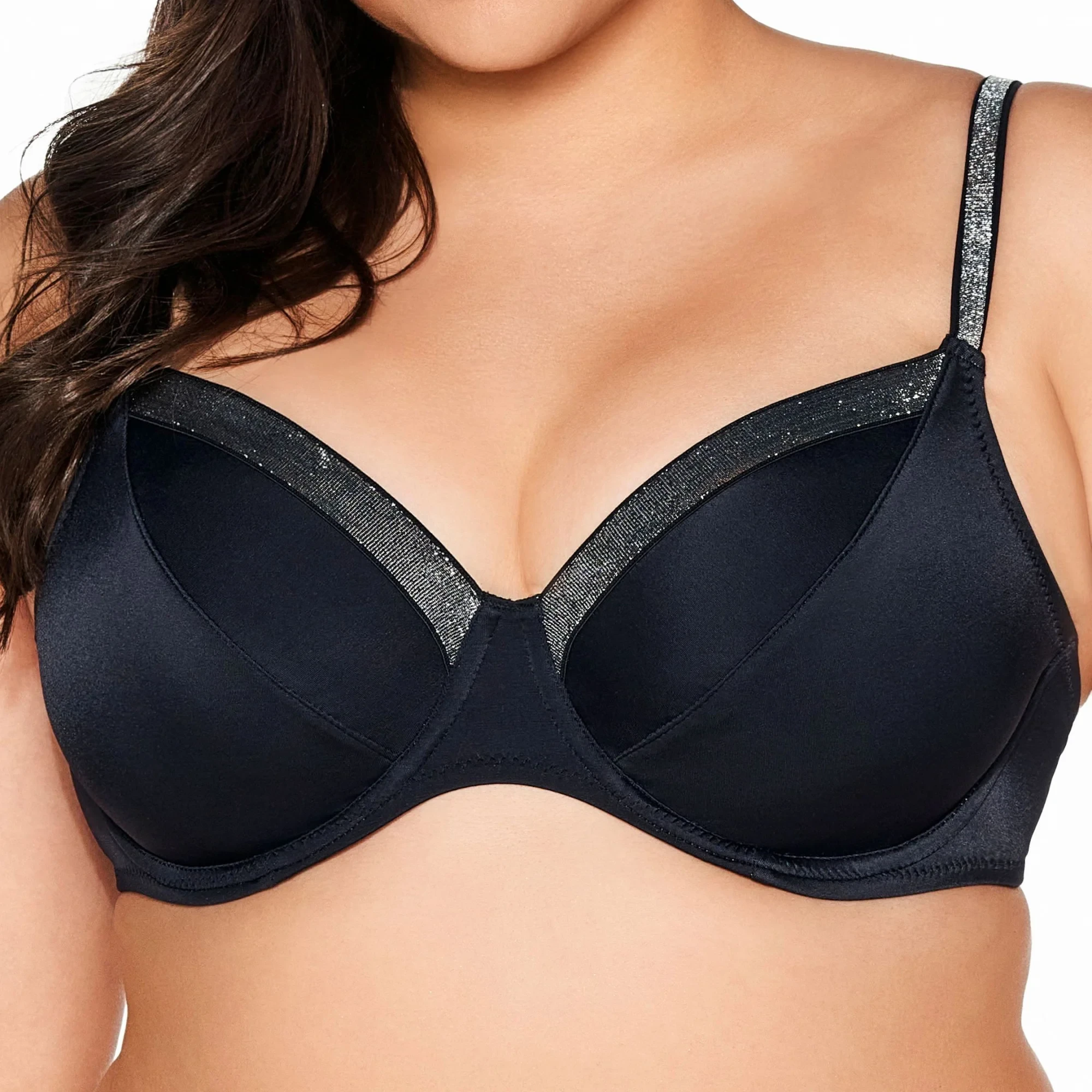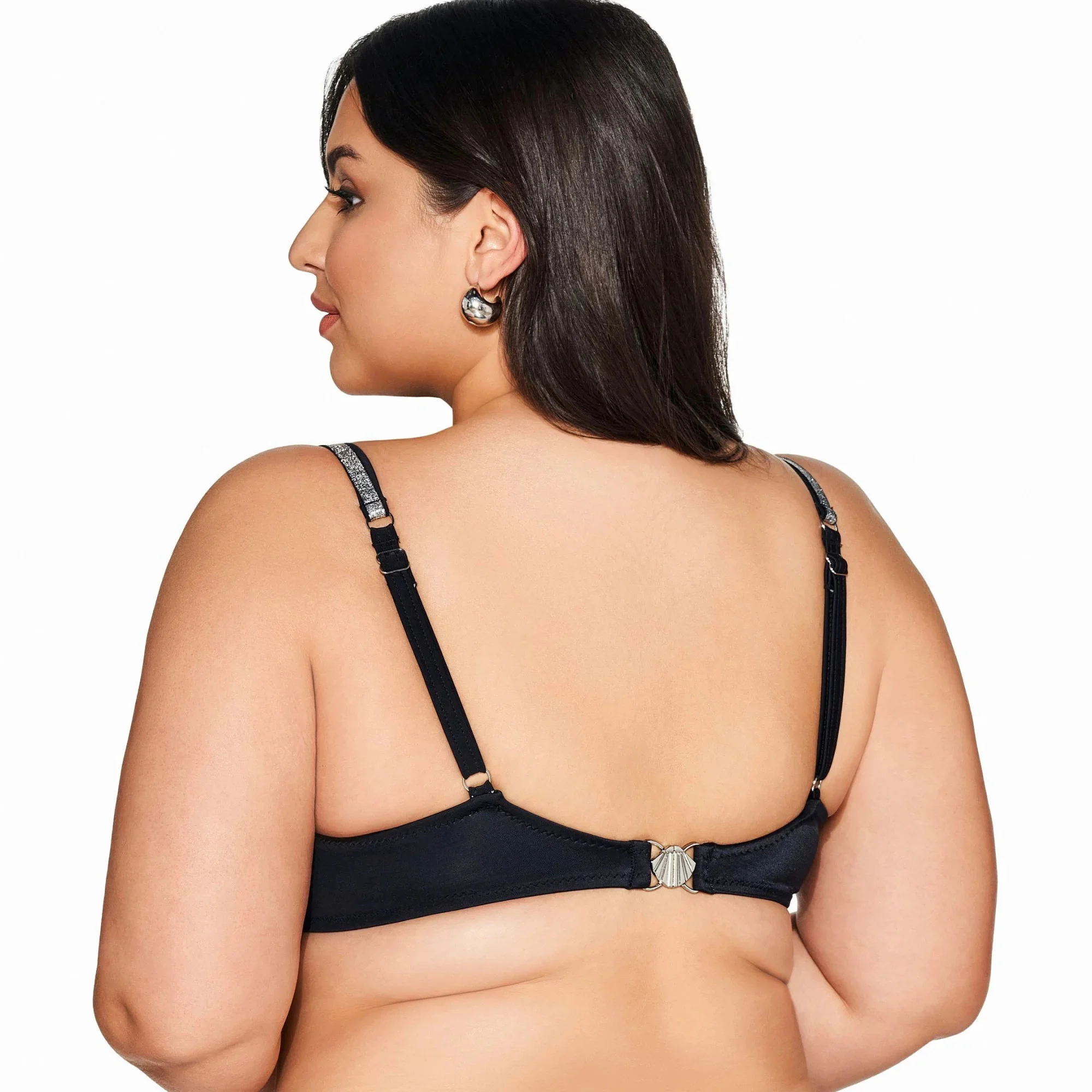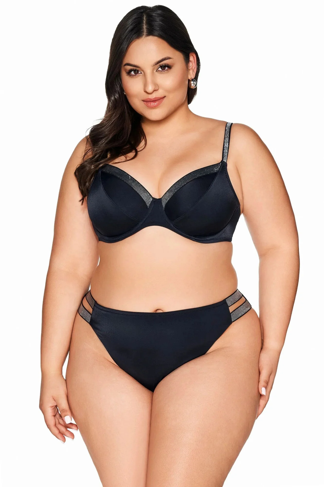 Horní díl plavek 225 black plus AVA - černá barva - klasický styl - měkké košíčky - stylová páska ve výstřihu - elastická ramínka