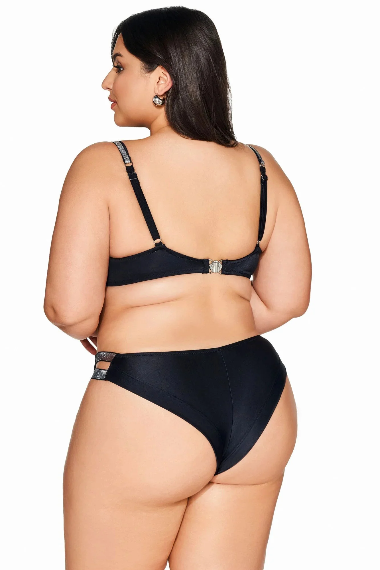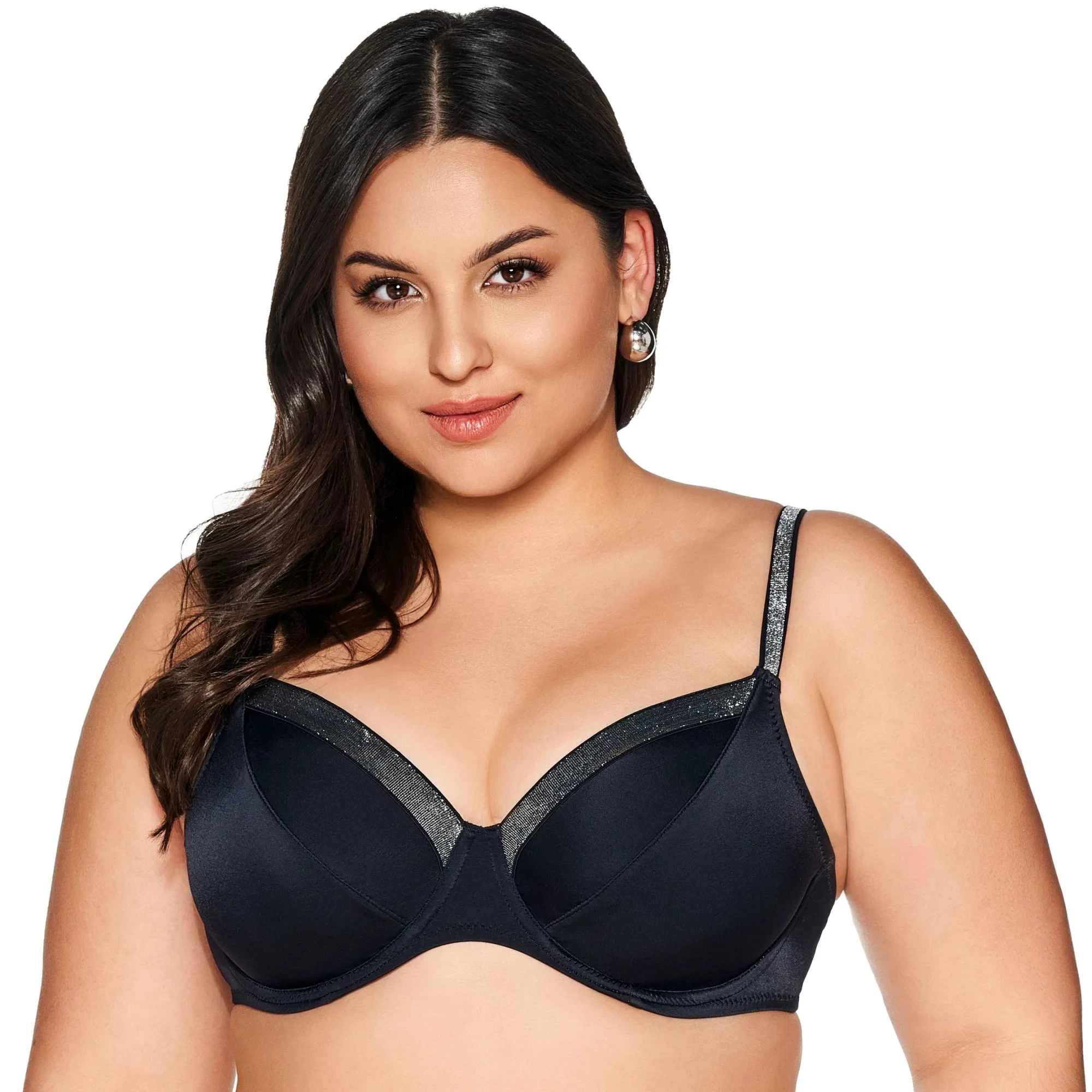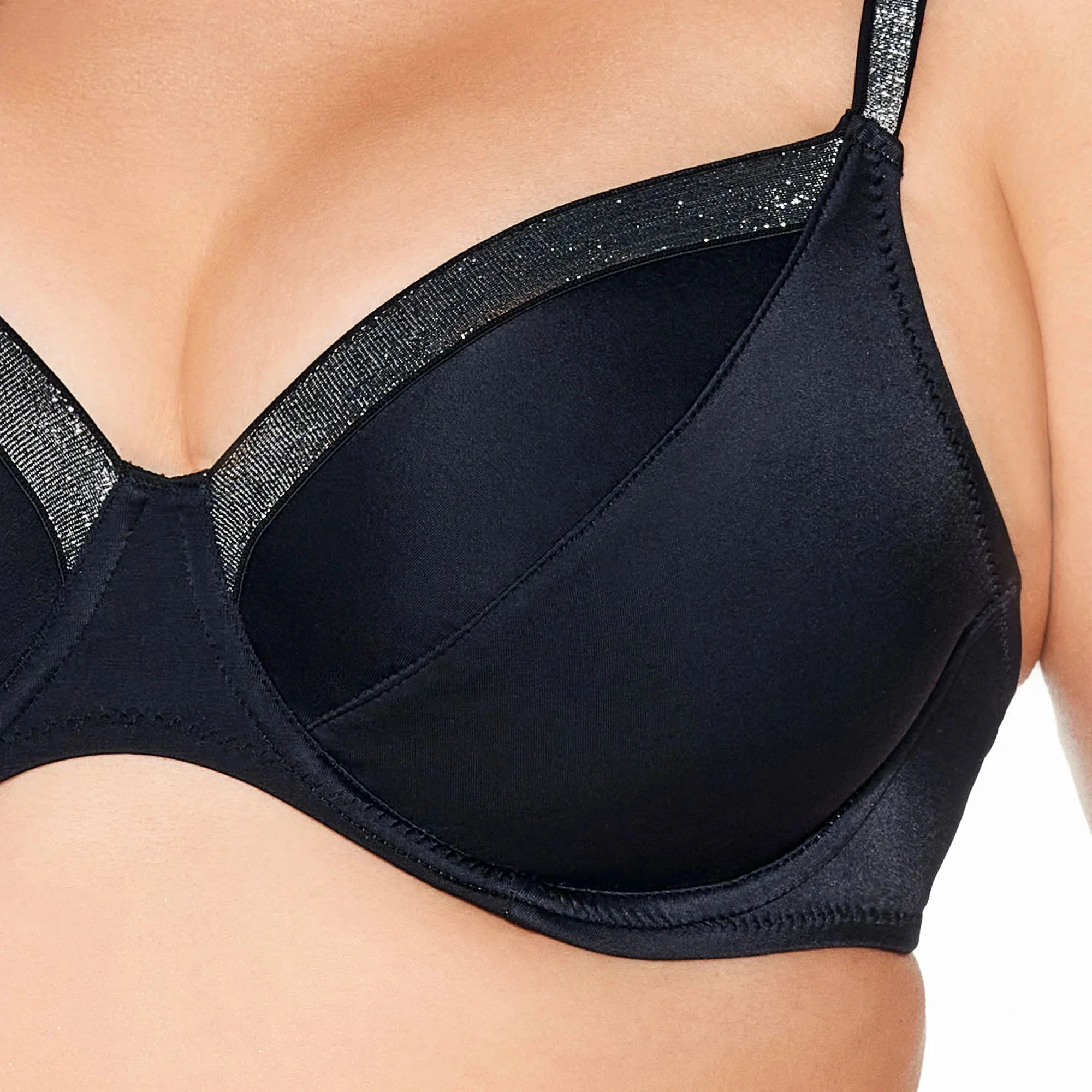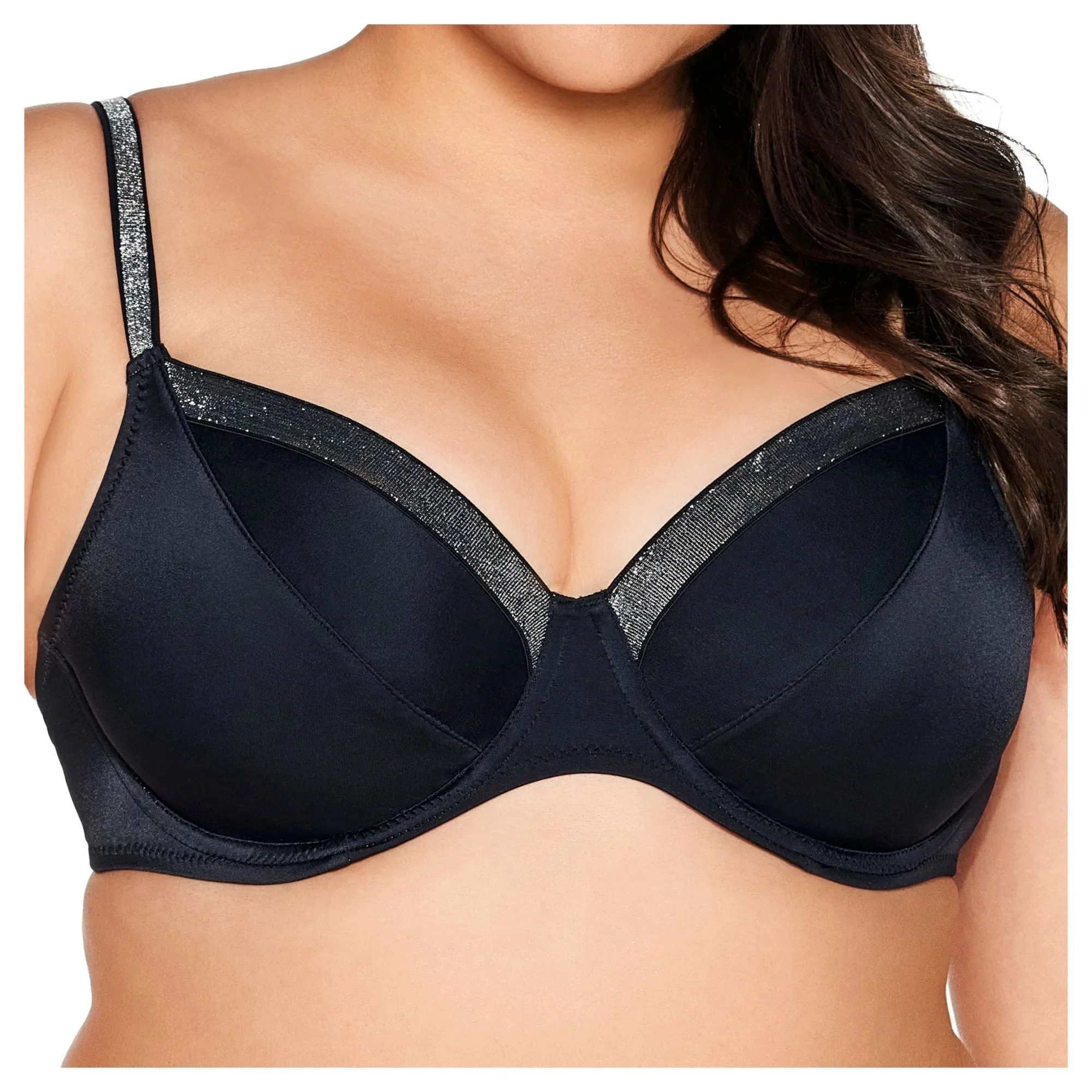 Horní díl plavek 225 black plus AVA - černá barva - klasický styl - měkké košíčky - stylová páska ve výstřihu - elastická ramínka