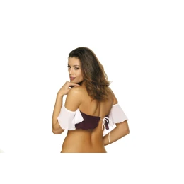 Top smyslně odhaluje ramena a je jedním z nejmódnějších plážových kousků letošní sezóny. Je ušita ze strečové tkaniny, která umožňuje její multifunkčnost - můžete ji nosit i na plavání nebo opalování. Krásně vypadá s šortkami nebo plážovou sukní. Vyniká zcela přirozeným vzhledem - nemá žádné tvarované košíčky ani vyztužující vložky. Výstřih a spodní část topu jsou na gumičku, která skvěle padne. Na zadní straně - vazba. Objednejte si ho a vypadejte prostě skvěle!