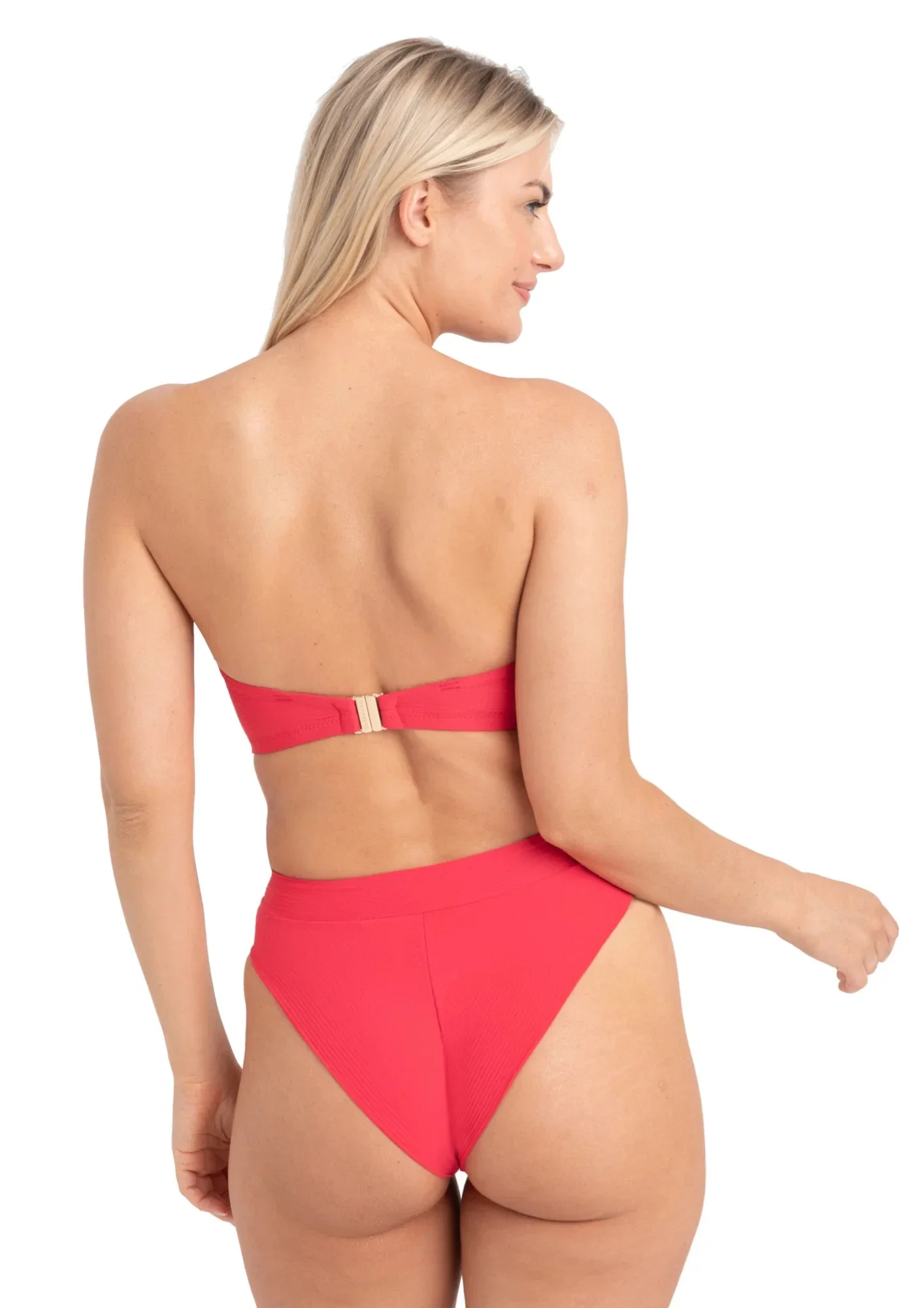 Horní díl plavek Kaia A450 red Samanta - červená barva - z kvalitního španělského mikrovlákna - vyztužená podprsenka - s kosticemi - s řasením - košíčky z lehké pěny - odepínatelná ramínka - lze nosit i bez ramínek - zapínání vzadu s logem Samanta - certifikát Oeko-Tex STANDARD 100®