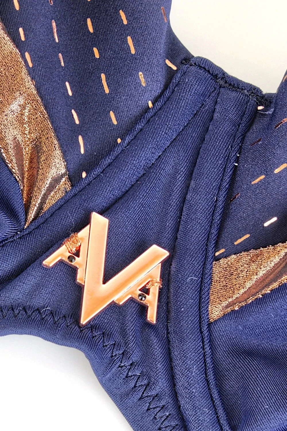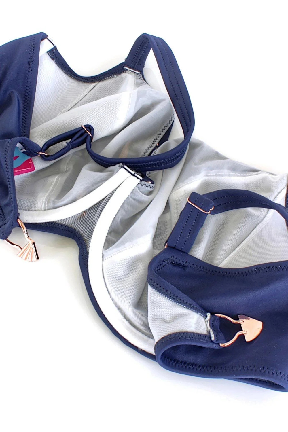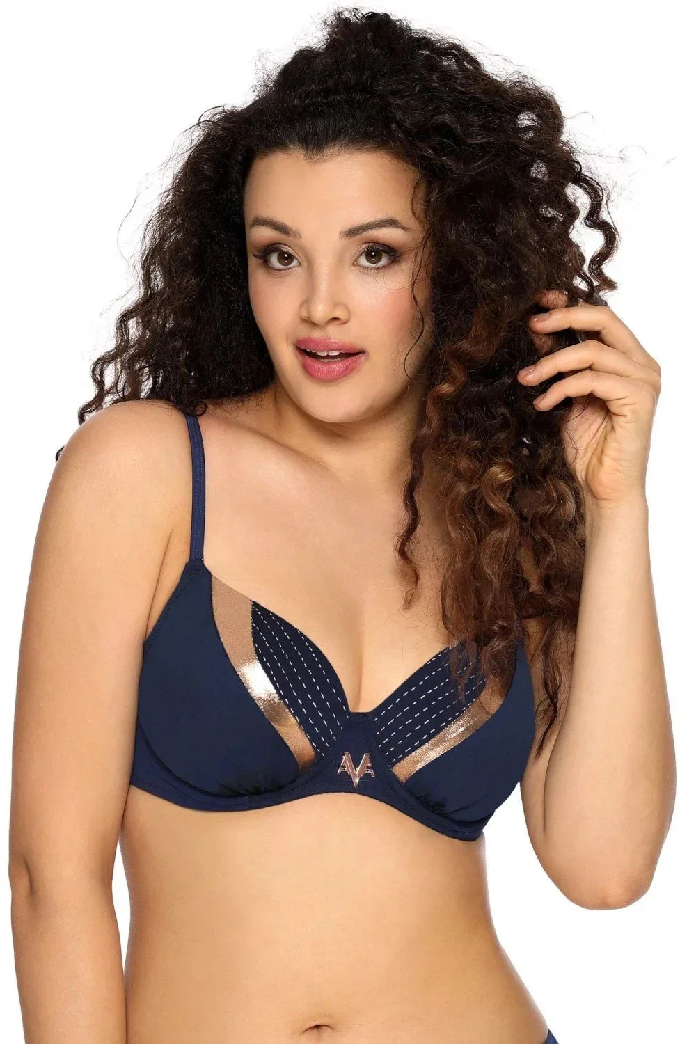 Horní díl plavek 138/1 AVA - tmavě modrá barva - z velmi kvalitního mikrovlákna - vyztužené košíčky zdobené lesklou látkou - s kosticemi - regulovatelná ramínka - bezniklové zapínání