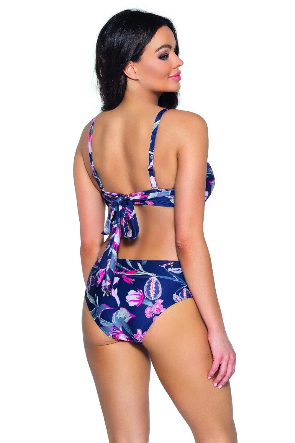 Horní díl plavek 167 Flowers AVA - tmavě modrá barva - z velmi kvalitního mikrovlákna - vyztužené košíčky - s kosticemi - ramínka na zavazování - za krk, vzadu, pod prsy - nastavitelná a odepínatelná ramínka