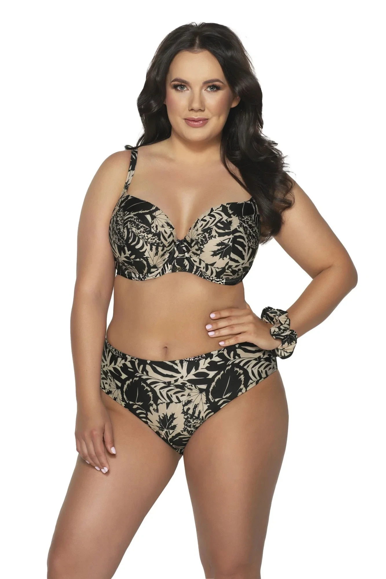 Horní díl plavek 184 Mocca AVA - z hladkého mikrovlákna - se vzorem - lehce vyztužené košíčky - s kosticemi - nastavitelná a neodpínatelná ramínka