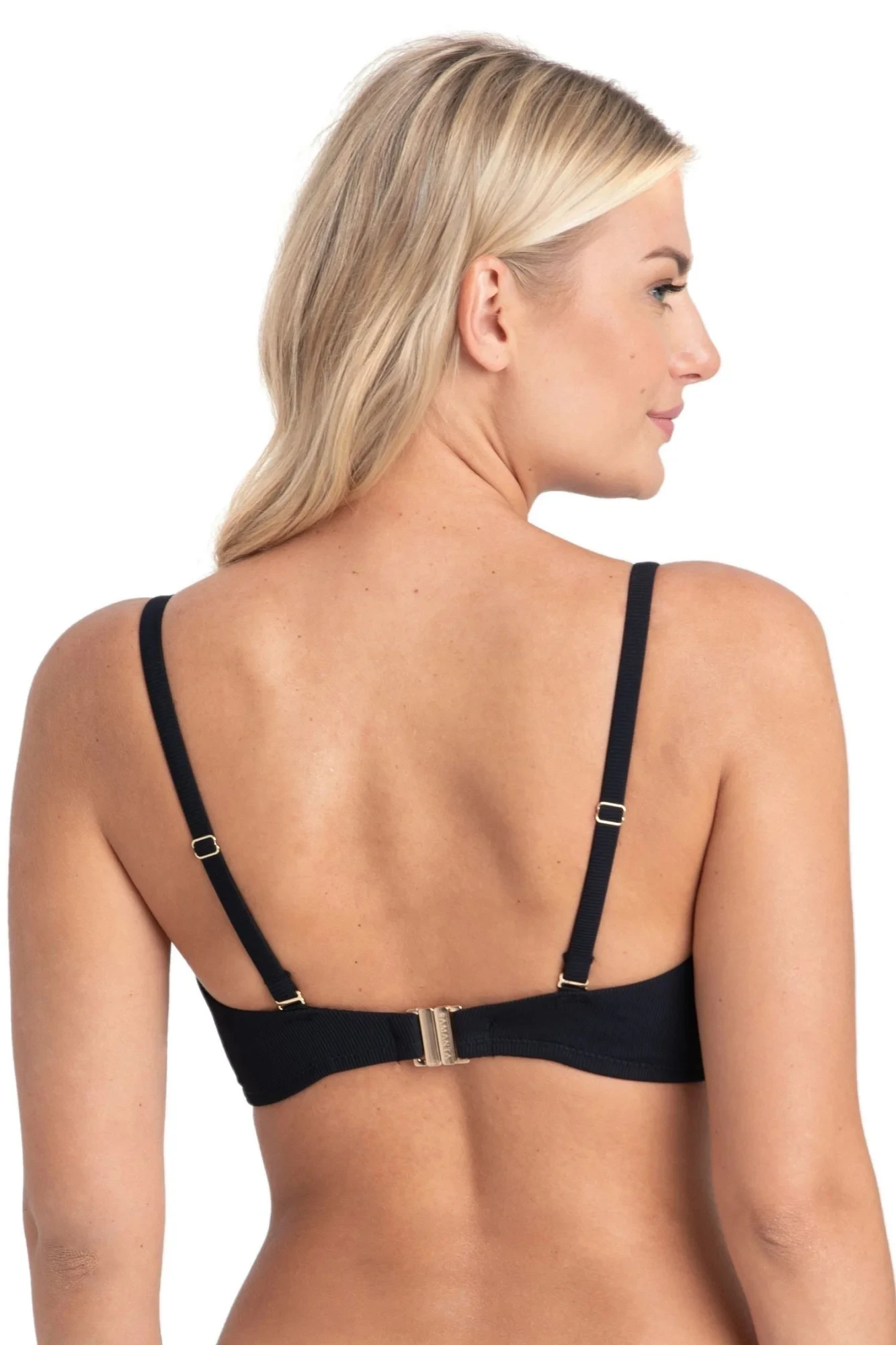 Horní díl plavek A450 Venus Samanta - černá barva - z kvalitního španělského mikrovlákna - vyztužená podprsenka - s kosticemi - s řasením - košíčky z lehké pěny - odepínatelná ramínka - lze nosit i bez ramínek - zapínání vzadu s logem Samanta - certifikát Oeko-Tex STANDARD 100®Materiálové složení: 80% polyamid + 20% elastan