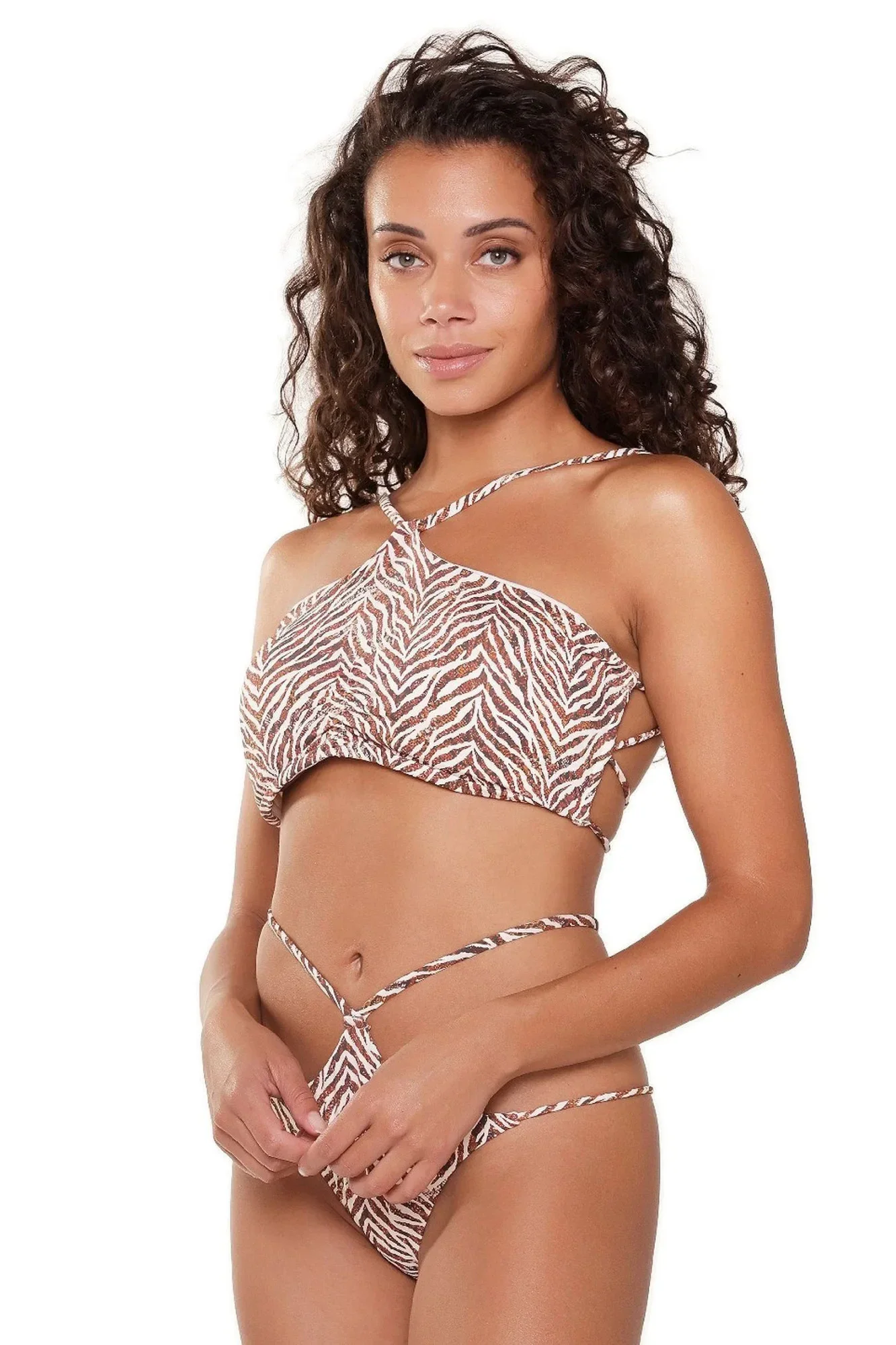 Horní díl plavek 7206BB LingaDore - zvířecí motiv - zebra - ramínka nastavitelná - zavazování na pásky na zádech