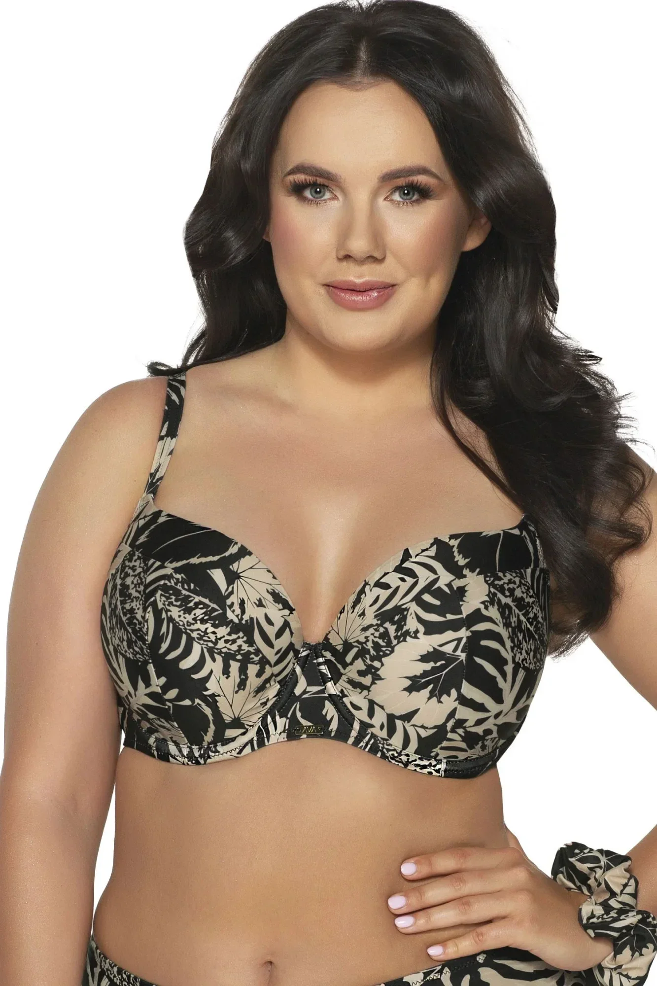 Horní díl plavek 184 Mocca plus AVA - vícebarevná barva - z hladkého mikrovlákna - se vzorem - lehce vyztužené košíčky - s kosticemi - nastavitelná a neodpínatelná ramínka