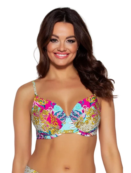 Dámský horní díl plavek Sk 172 Turquoise plus Ava < br /> - vyztužené košíčky s kosticemi < br /> - neodepínatelná a nastavitelná ramínka < br /> - zapínání vzadu < br /> - elastická látka z barevného mikrovlákna