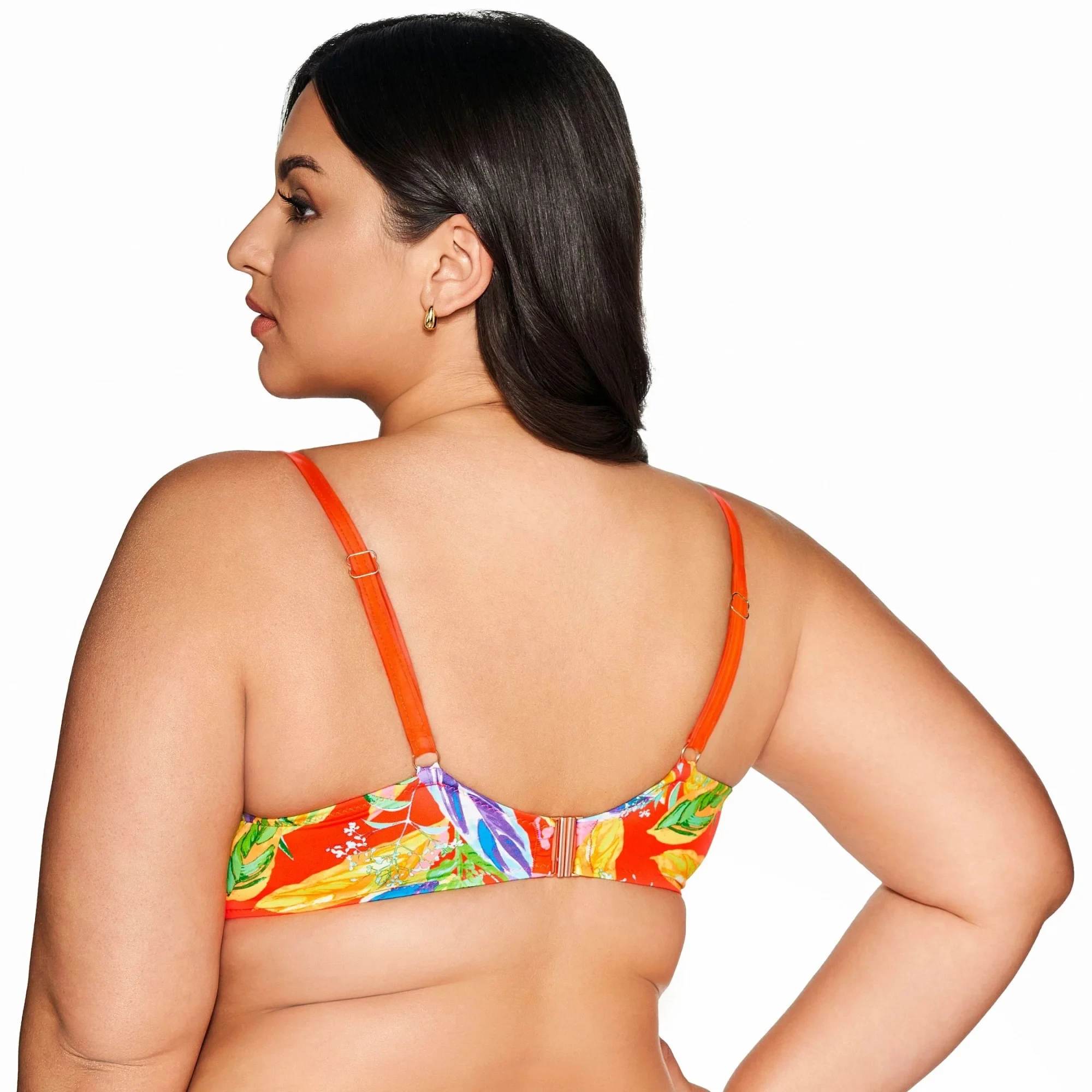 Horní díl plavek Vivid 226 AVA - oranžová barva - polstrované košíčky s kosticemi - tropický vzor - nastavitelná ramínkaMateriálové složení: 80% polyamid + 20% elastan