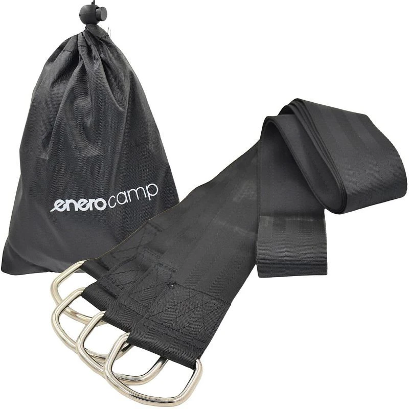 ENERO CAMP HAMMOCK HANGING BAND je pevné, bezpečné a praktické řešení pro zahradu, pozemek i kemp. Díky odolnému nylonu, ocelovým přezkám a maximálnímu zatížení 200 kg poskytuje spolehlivé upevnění a dlouhou životnost. Je to výrobek, který usnadňuje instalaci a zvyšuje komfort houpaček, houpacích sítí a dalších.