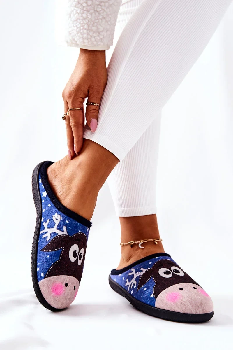 Hřejivé pantofle Model Reindeer Modré Elodie