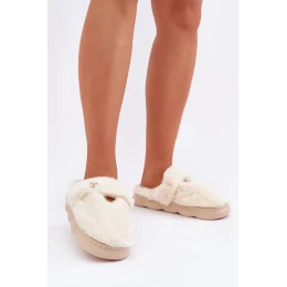 Hřejivé pantofle s broží světle béžové model 21681719 - Boto