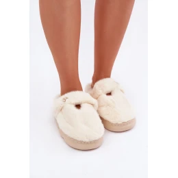 Hřejivé pantofle s malou broží světle béžové Primaria