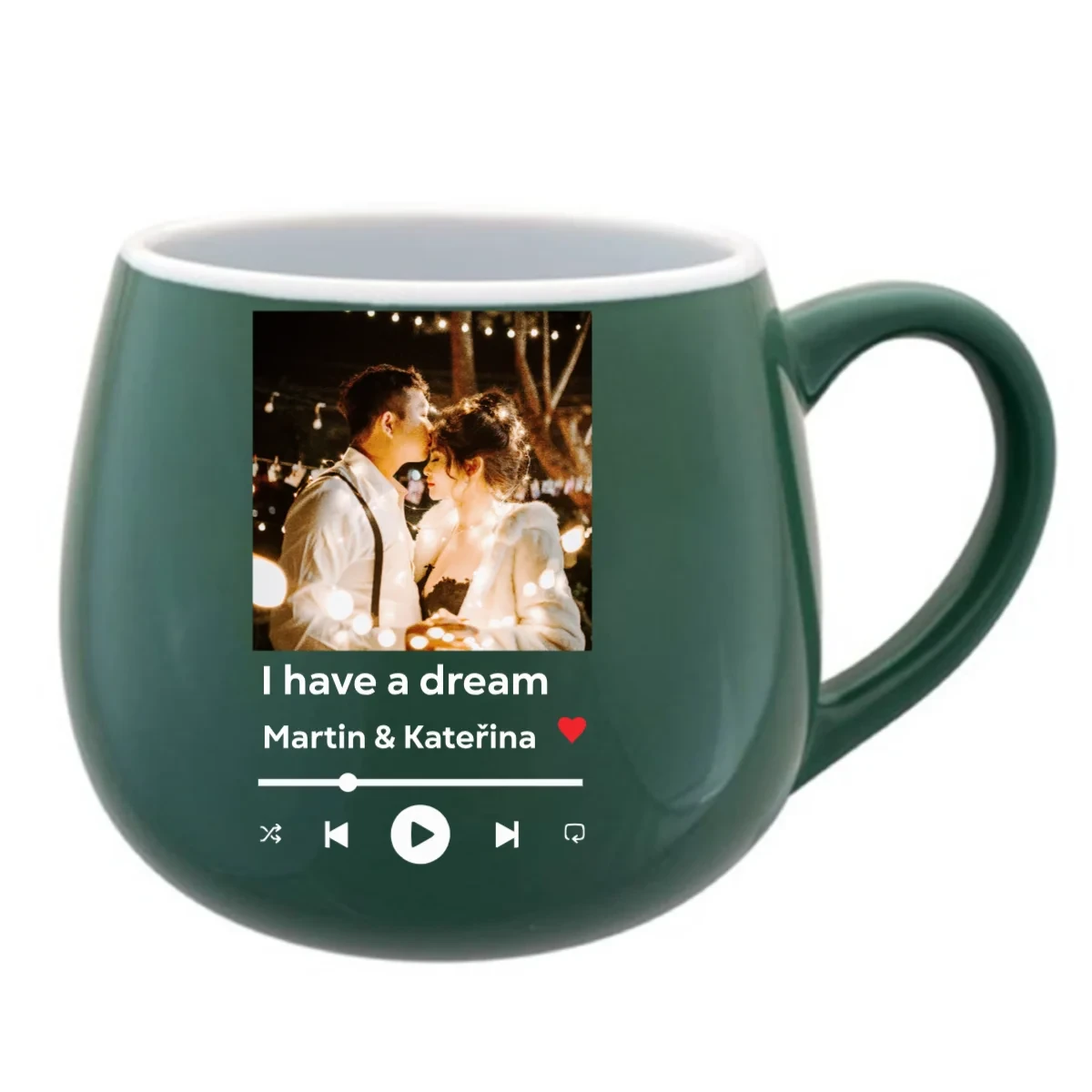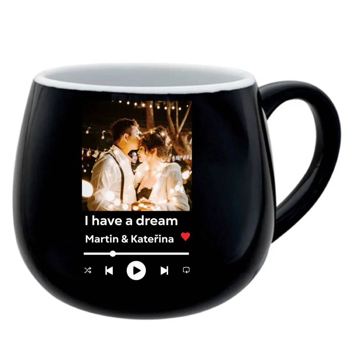 Na hrnečku je vyobrazený moderní hudební přehrávač, na který si můžete přidat vlastní titulek a podtitulek. Ukažte svou kreativitu a udělejte hrneček opravdu jedinečný! K tomu si můžete vložit svou oblíbenou fotografii, což z každého doušku udělá výjimečný zážitek.