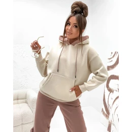 Přidání recenze k Hrubší dvoubarevná dámská tepláková souprava v barvě cappuccino (VE102)