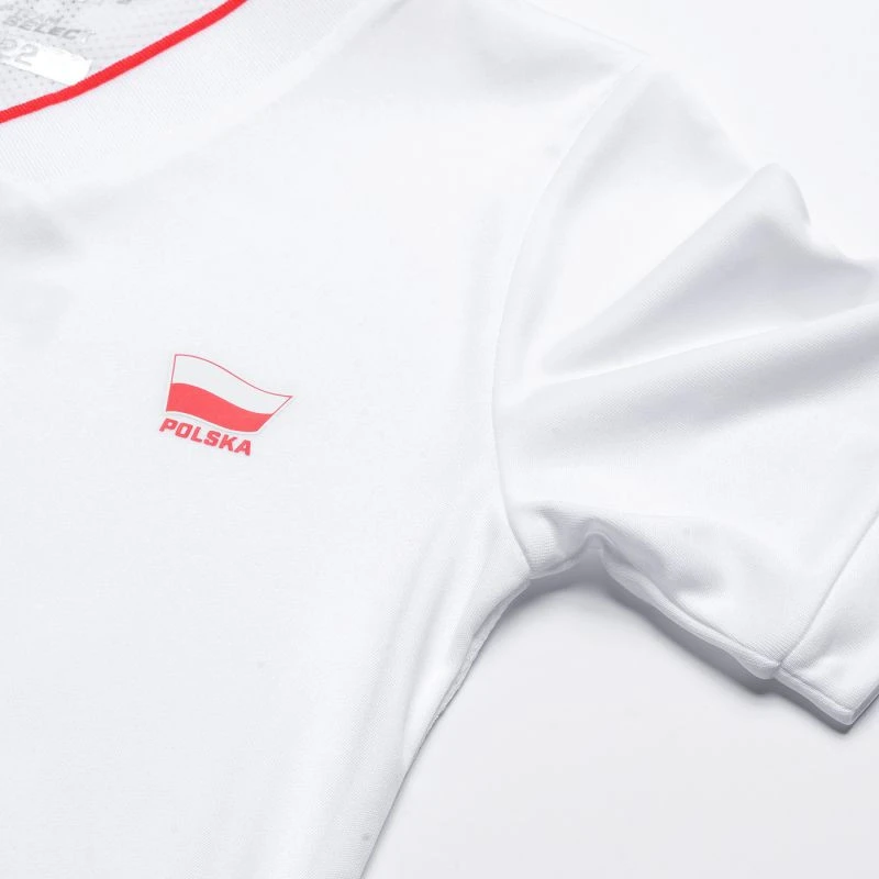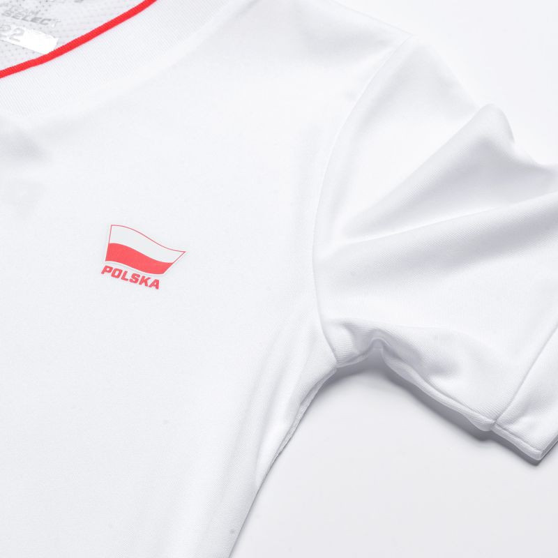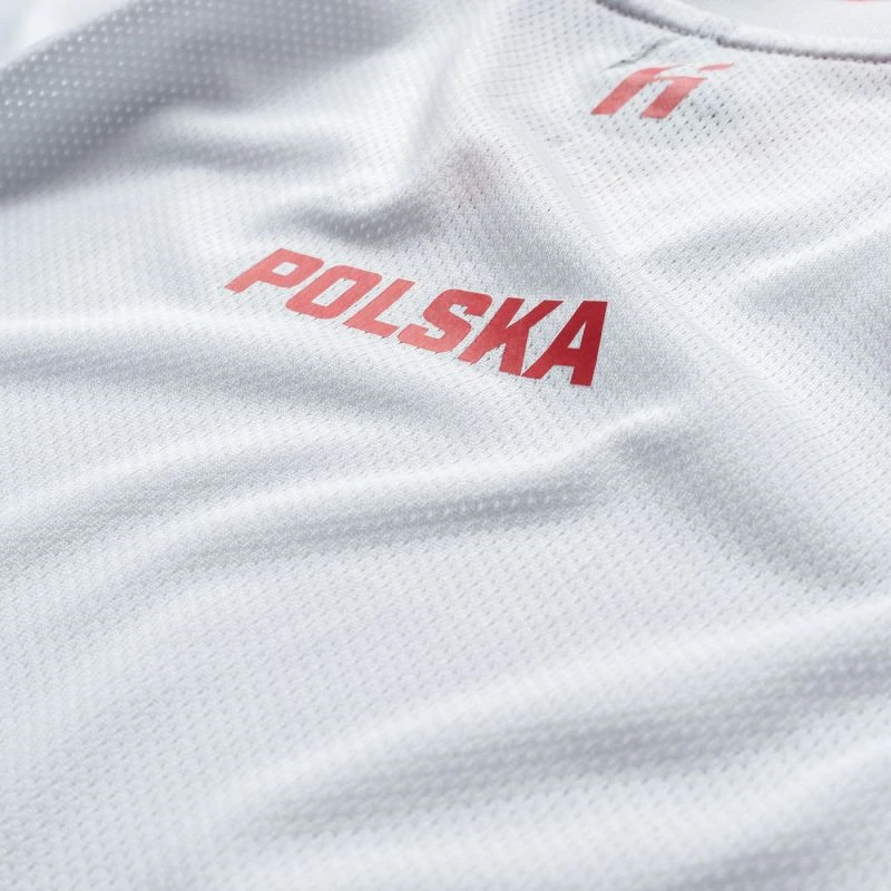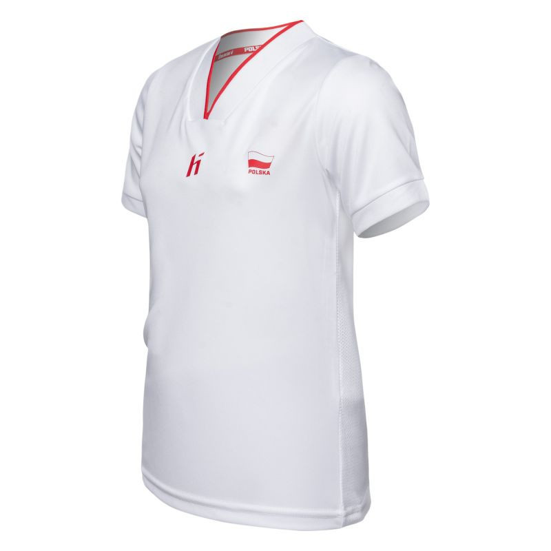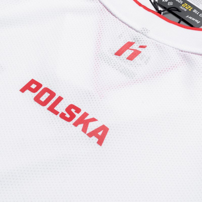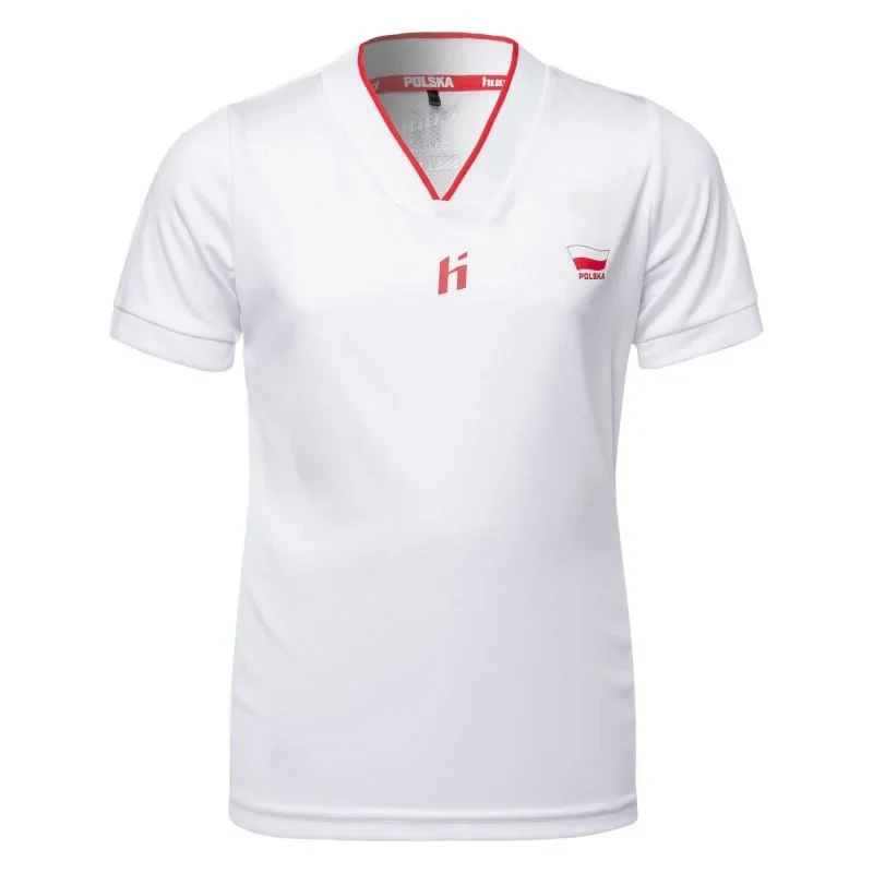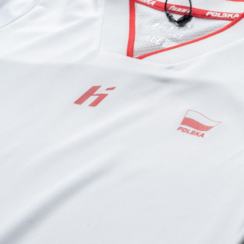 Tričko ALUMNI POLAND KIDS značky Huari má rovný střih s výstřihem do V. Je vyrobeno ze syntetického materiálu, jehož výhodou je odvod potu od pokožky. Zadní strana trička má strukturu tvořenou tisíci malých otvorů, které pomáhají transportovat vlhkost ven. Celek je doplněn nápisem "Poland" a polskou vlajkou.