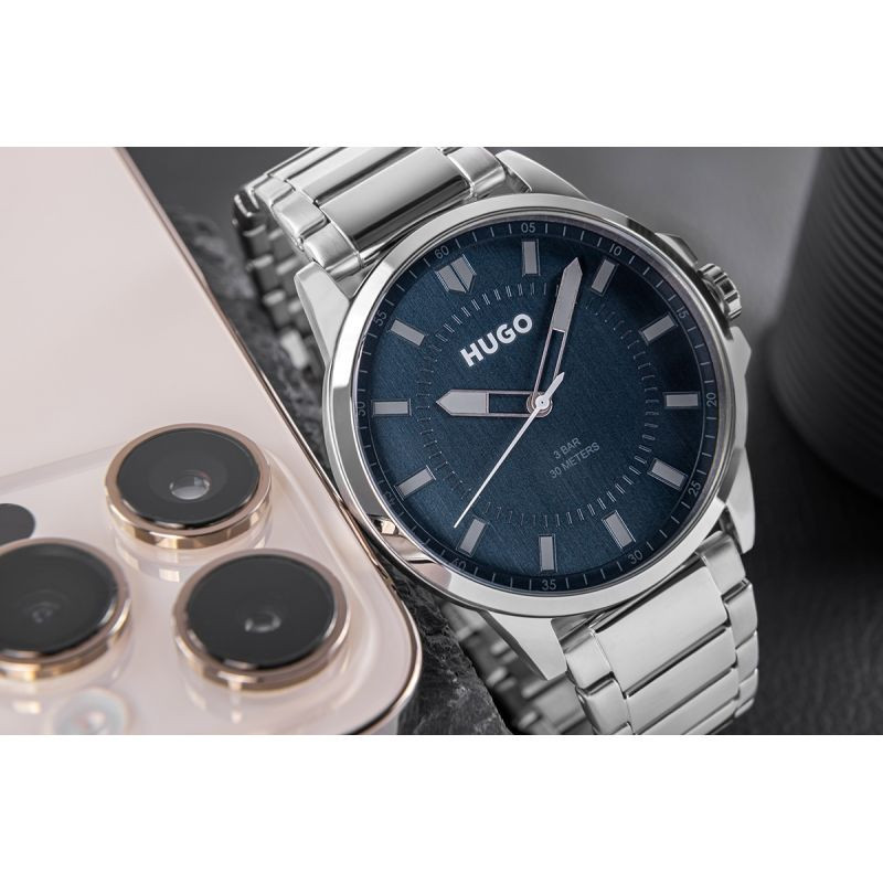 Hugo First 1530186 to zegarek, który przemawia elegancją i siłą minimalizmu – granatowa tarcza przyciąga wzrok głębią, a srebrne detale dodają mu wyrafinowanego charakteru. Stalowa bransoleta podkreśla męską pewność siebie, łącząc solidność z doskonałym stylem. To czasomierz dla tych, którzy chcą wyróżniać się klasą bez zbędnych słów.