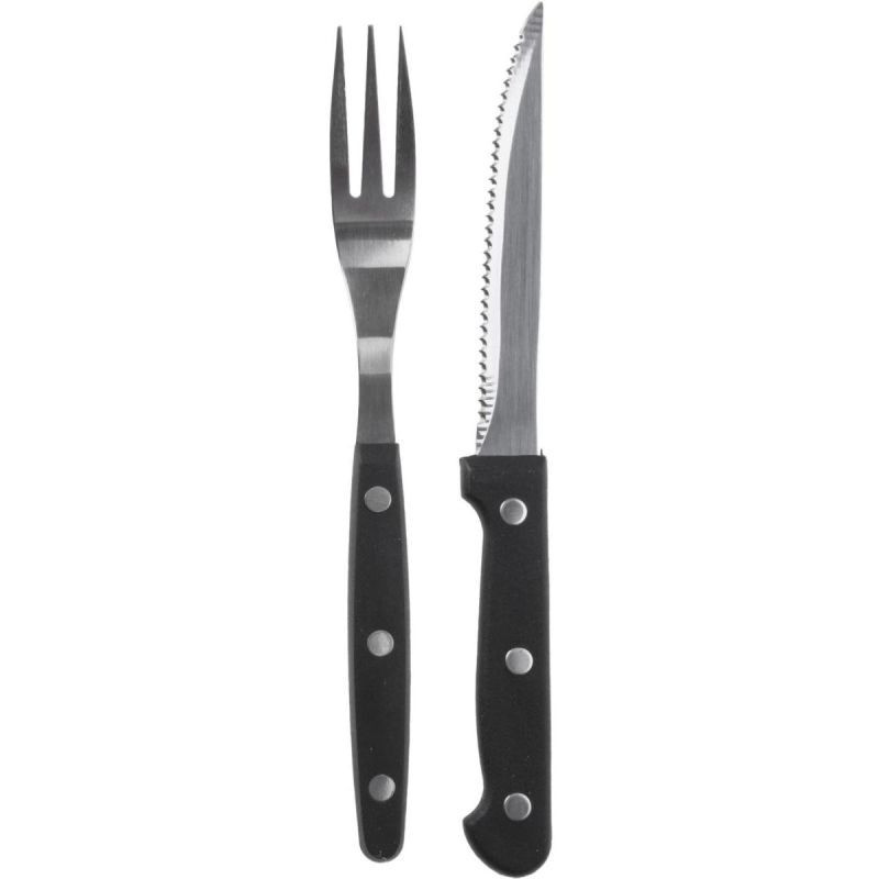 Solidne uchwyty z 3-punktowym nitowaniem ze stali stabilnie leżą w dłoni, są idealne do spożywania steków, pizzy, burgerów i potraw z grilla.