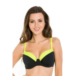 Biustonosz kąpielowy z żółtym wykończeniem pięknie podkreśli opaleniznę, a doskonała konstrukcja doda Ci pewności siebie!
