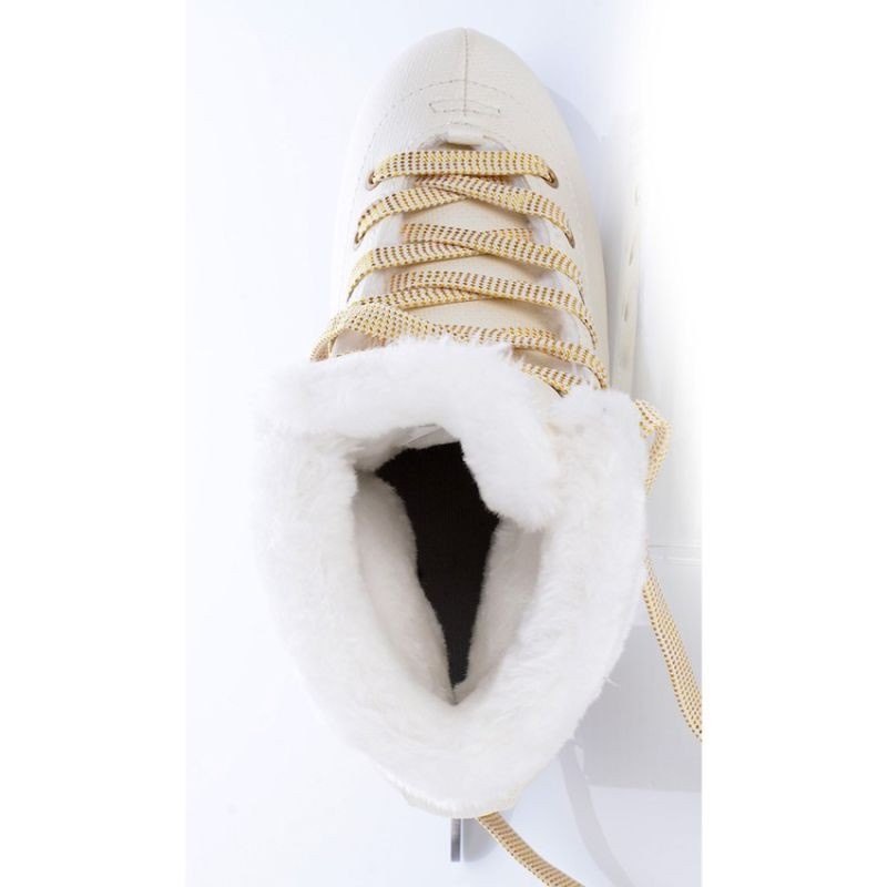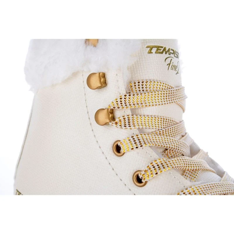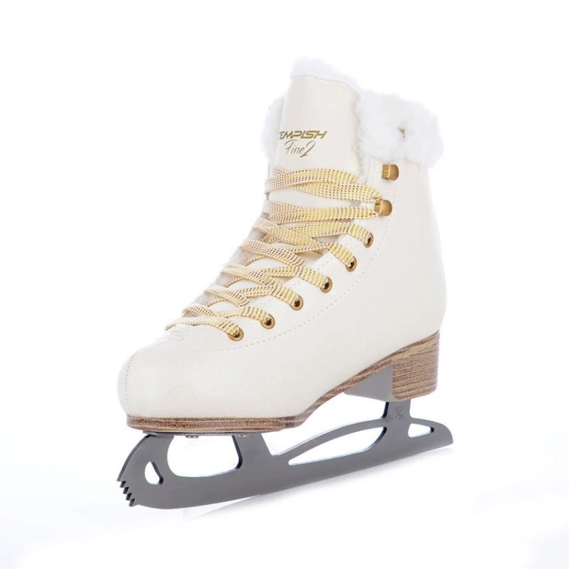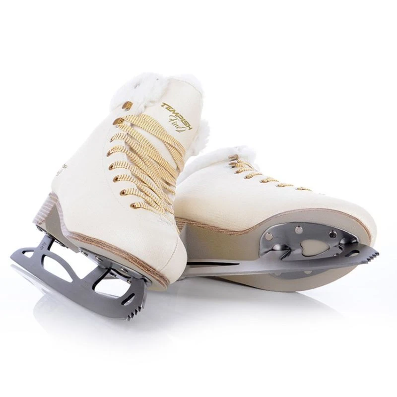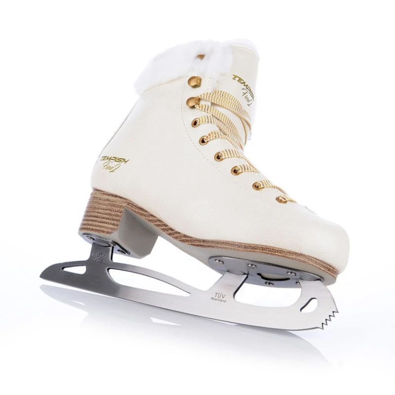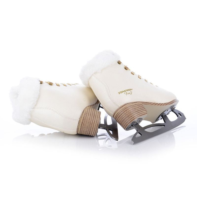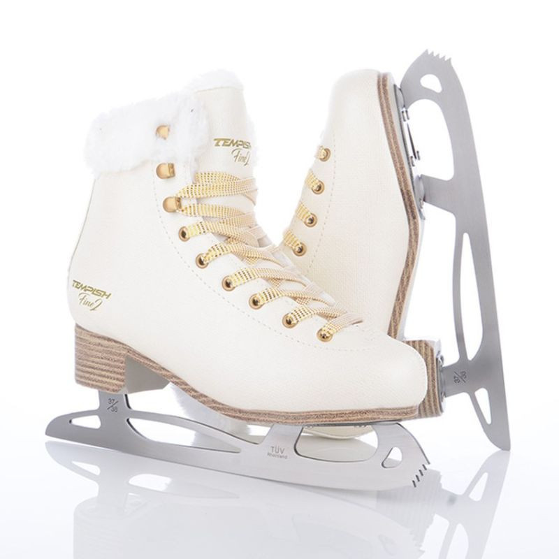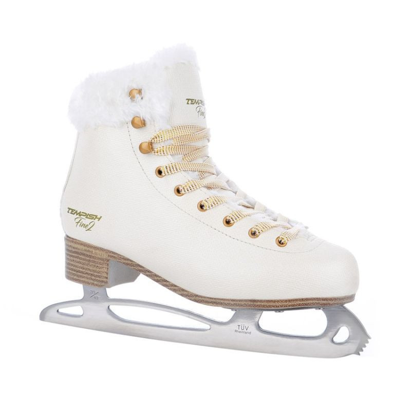 Łyżwy figurowe TEMPISH Fine II Styl, komfort i precyzja jazdy TEMPISH Fine II to eleganckie łyżwy figurowe, które łączą ponadczasowy design z nowoczesnymi rozwiązaniami technicznymi. Stworzone z myślą o osobach poszukujących komfortu i solidnego wykonania. Łyżwy sprawdzą się zarówno podczas rekreacyjnych przejażdżek, jak i bardziej wymagającej jazdy. Główne cechy: Elegancki wygląd i trwała konstrukcja: Stylowe wykończenie z PVC z teksturowaną powierzchnią zapewnia estetykę i odporność na uszkodzenia Trwałe materiały odporne na niskie temperatury i intensywne użytkowanie Komfort cieplny i wygoda: Miękka futrzana wyściółka zewnętrzna i wewnętrzna utrzymuje ciepło i poprawia komfort Wnętrze z pianki memory DB 120 idealnie dopasowuje się do kształtu stopy Precyzja i bezpieczeństwo jazdy: Anatomiczne wsparcie kostki zmniejsza zmęczenie podczas dłuższej jazdy Ostrze TEMPISH WAVE z polerowanej stali nierdzewnej gwarantuje świetną kontrolę i trwałość Łyżwy