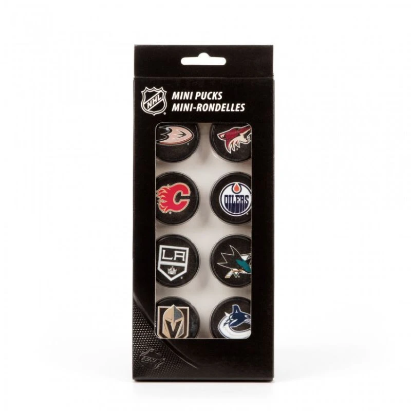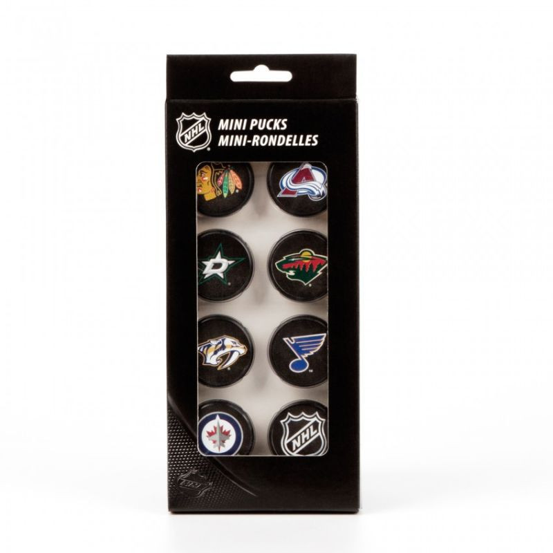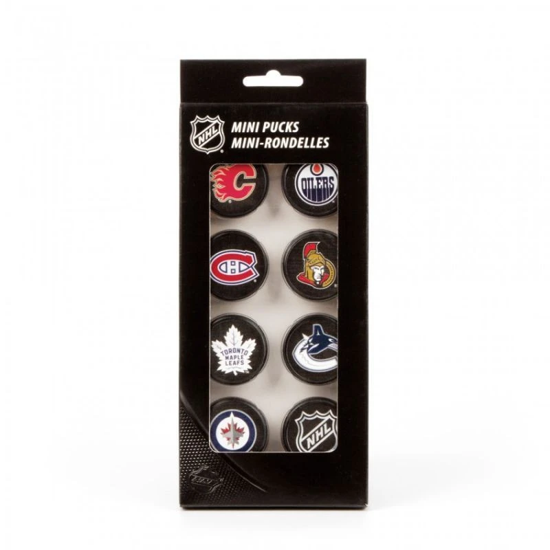 Pamětní mini puky Inglasco NHL Balení 8 puků s logem vašeho oblíbeného týmu NHL Klín přibližně 1,5 palce Prodává se v krabičce s okénkem Oficiálně licencovaný produkt NHL . Kanada
