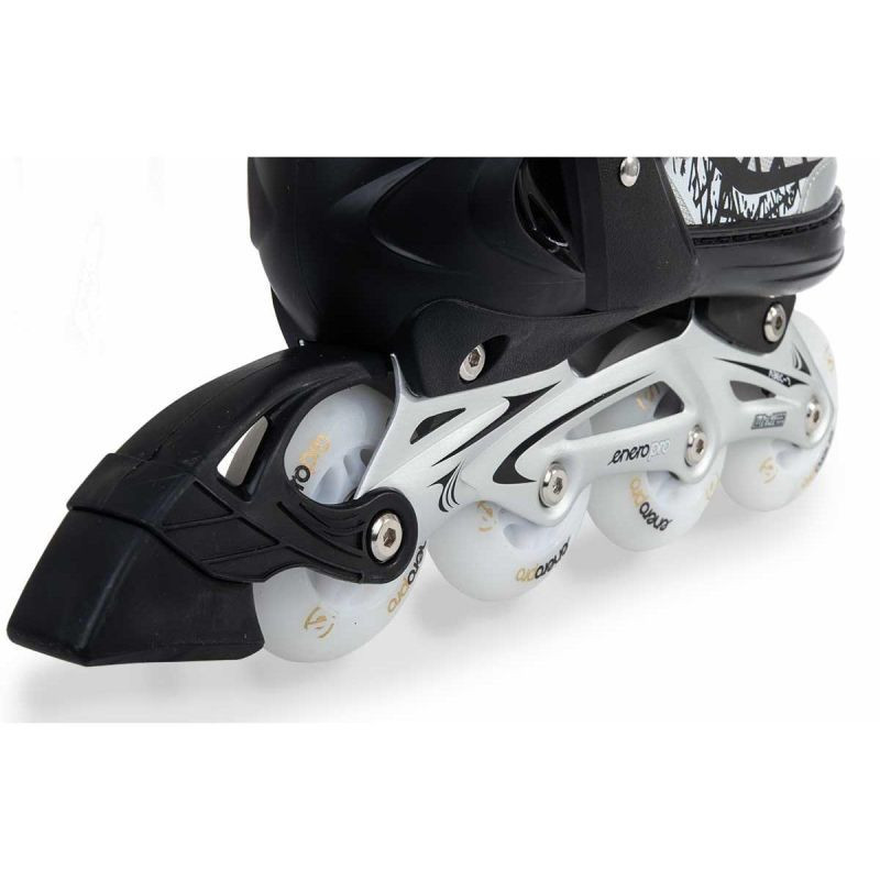 Kolečkové brusle 4 v 1ENERO PRO LED se vyznačují velmi dobrými jízdními vlastnostmi, a to díky lehkým hliníkovým skluznicím a spolehlivému systému upevnění se 3 přezkami, který se skládá z nastavitelné přezky Quick Lock, pásku na suchý zip a tkaniček, které pevně drží nohy na místě. Díky tomu všemu se tento model dobře osvědčuje za všech podmínek a poskytuje jedinečný zážitek z jízdy v každé ze svých 4 podob. Jejich vysoká kvalita zaručuje dlouhou životnost a odolnost vůči mechanickému poškození. Kolečkové brusle 4 v 1 ENERO PRO LED zaručují čistý požitek z jízdy.