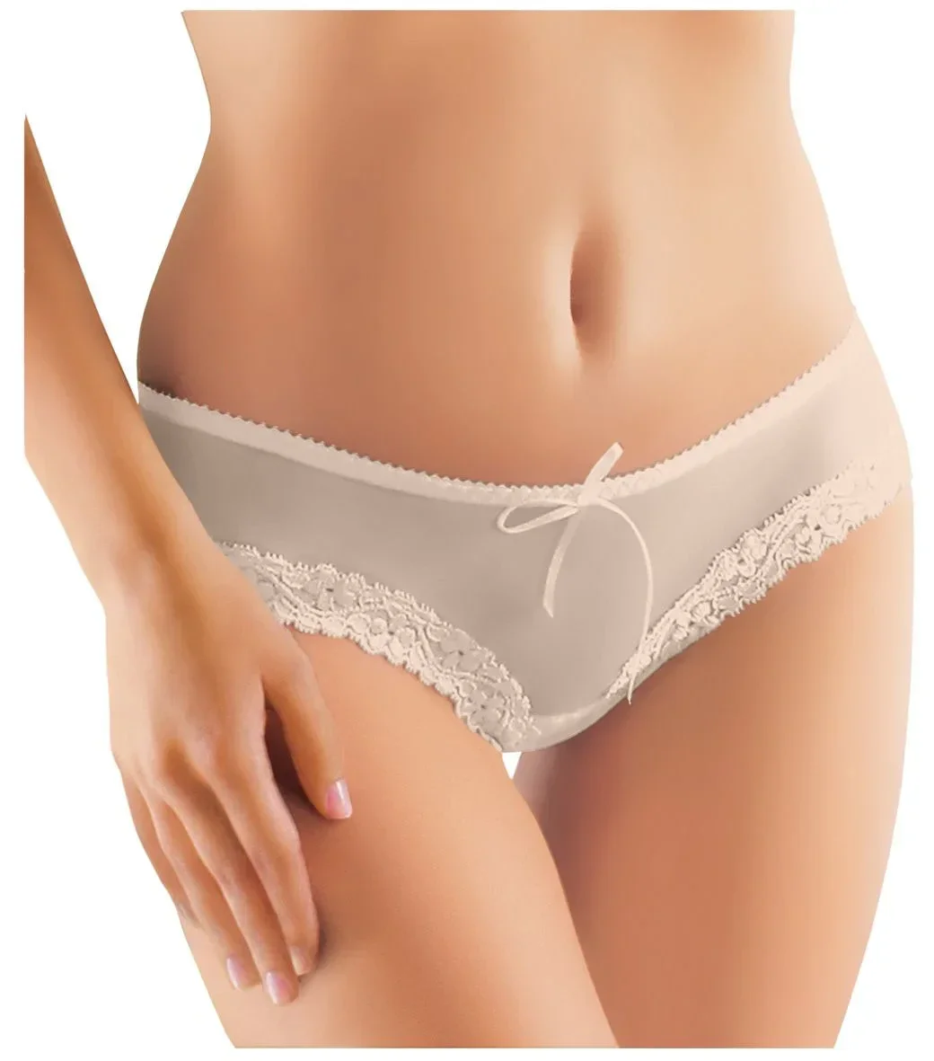 Pohodlné kalhotky z lehce průhledného tylu s krajkovým lemem a malou mašličkou v horní části. 89 % polyamid, 11 % elastan.