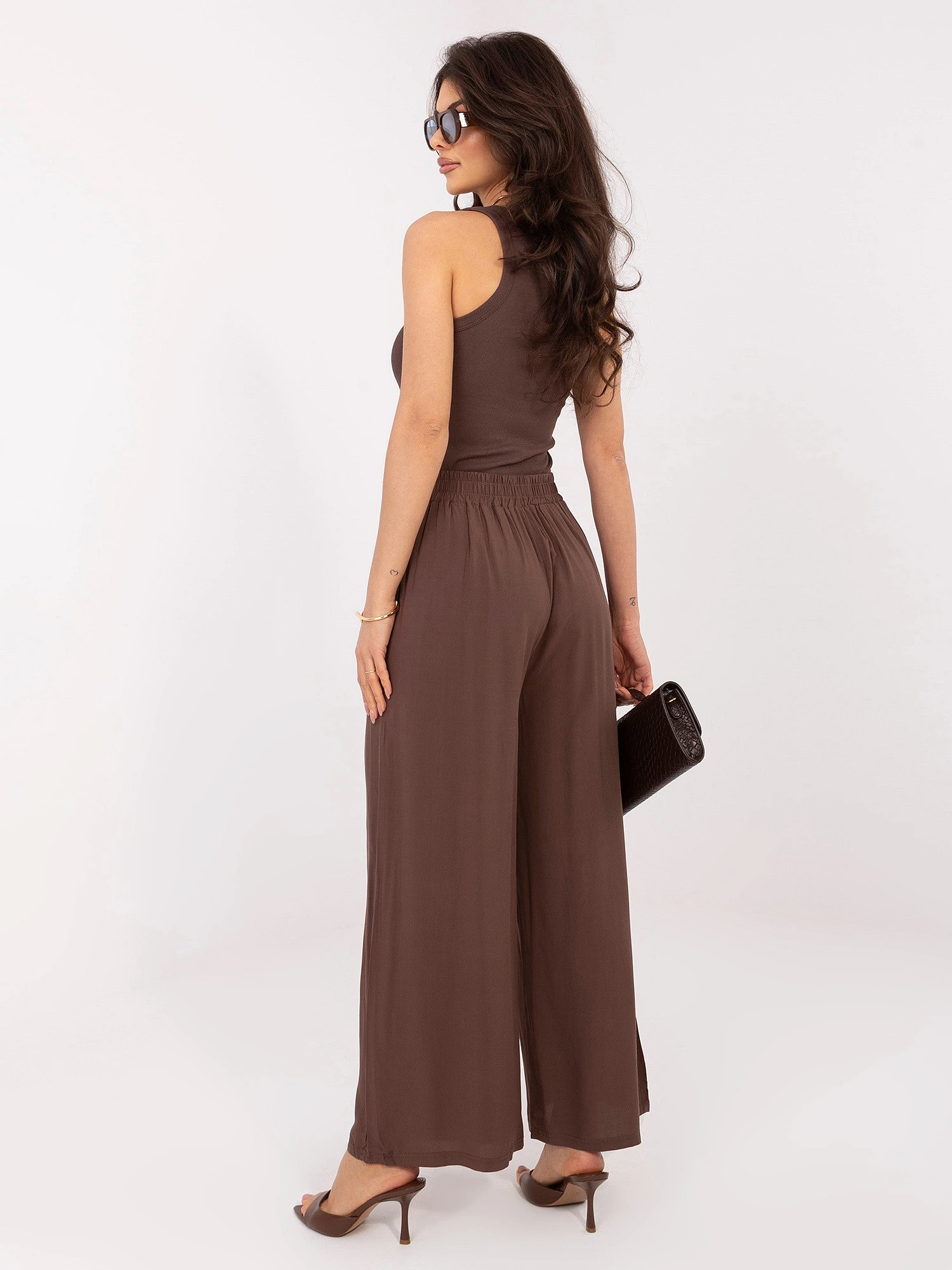 Modelka má na sobě velikost S/M.Míry modelky:výška 173 cm, poprsí 85 cm, pas 62 cm, boky 95 cm.