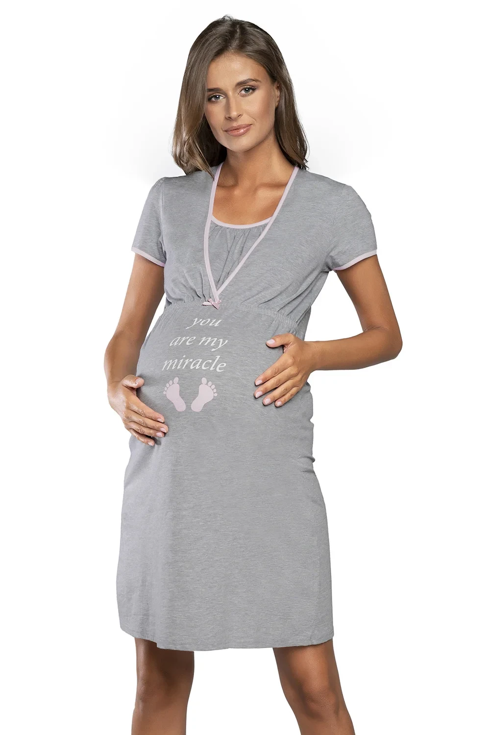 Noční prádlo italské módy. Model Carlina kr.r.. Výrobek je vyroben ze 100% bavlny. Typ výstřihu: kulatý. Výrobek pro ženy. Těhotenské oblečení. Délka rukávu: krátký.Parametry