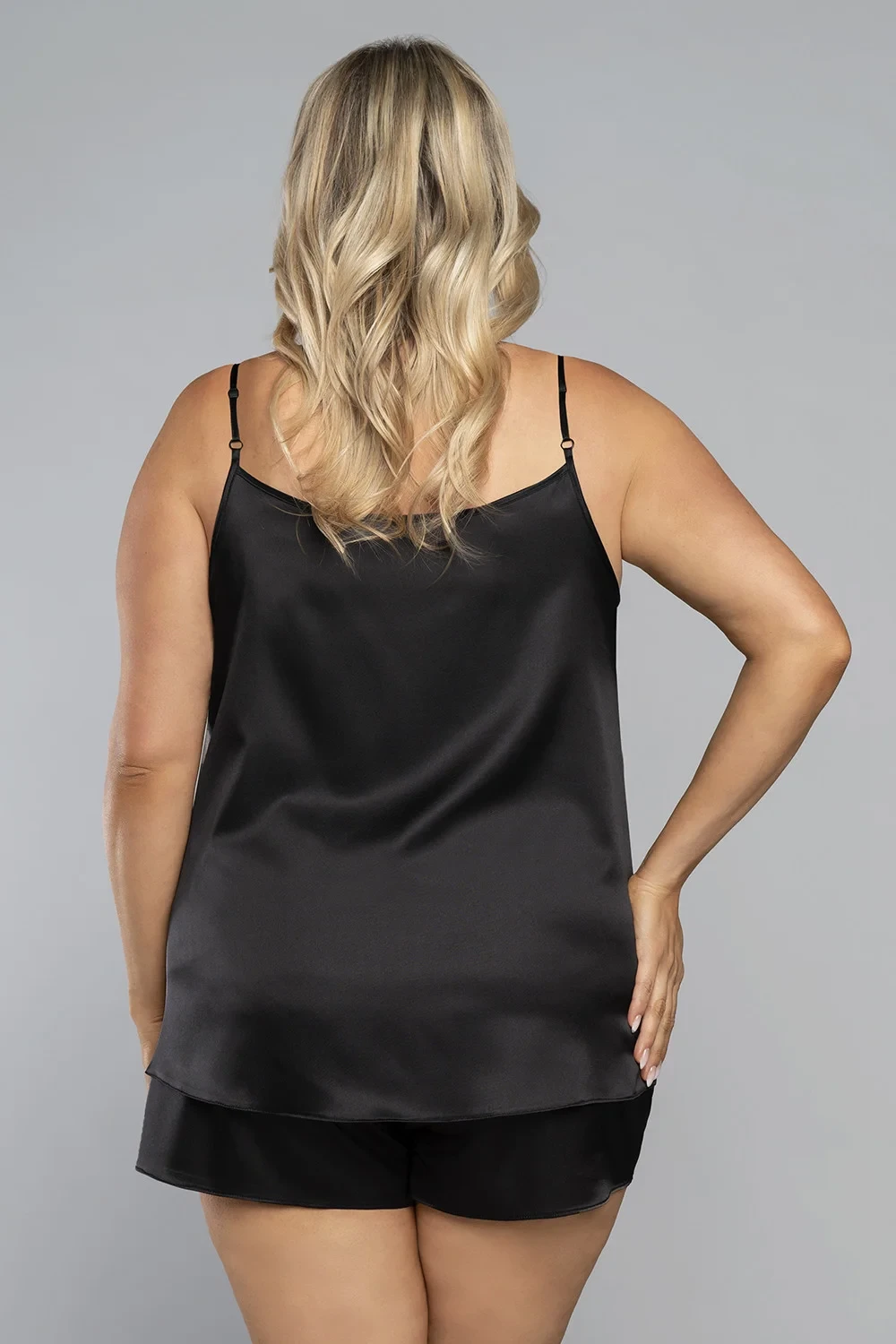 Modelka ma na sobie rozmiar S. Wymiary modelki: wzrost 173 cm, biust 85 cm, talia 62 cm, biodra 95 cm.