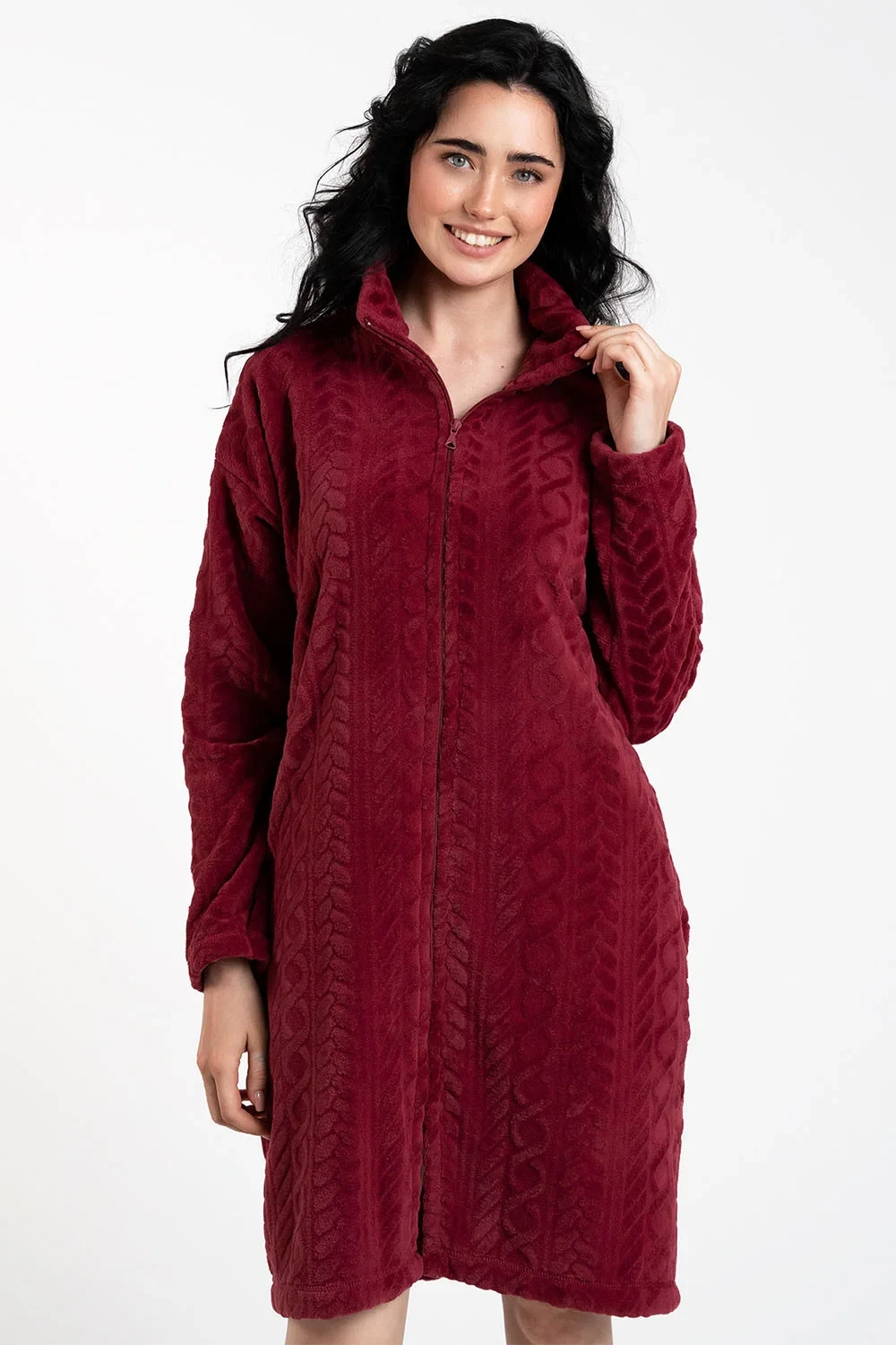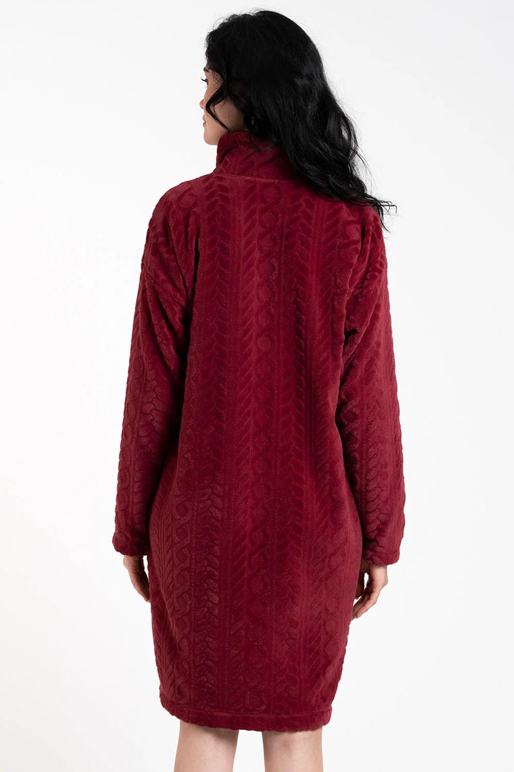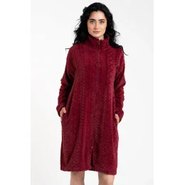 Noční košile značky Italian Fashion. dlouhý model Rena. výrobek je vyroben ze 100% polyesteru. místo zapínání: vpředu. má kapsy. noční košile se zapíná na zip. délka rukávu: dlouhý rukáv. délka: midi. dámský výrobek. typ výstřihu: stojáček.