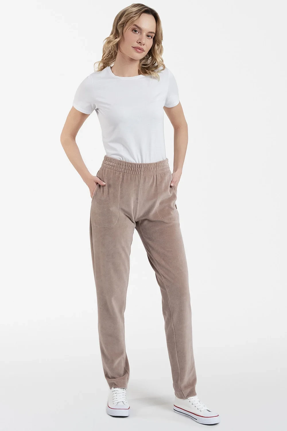 Kalhoty italské módy, model Roda long. Výrobek je vyroben z 80 % bavlny, 20 % polyesteru. Má kapsy. délka: dlouhá. dámský výrobek.