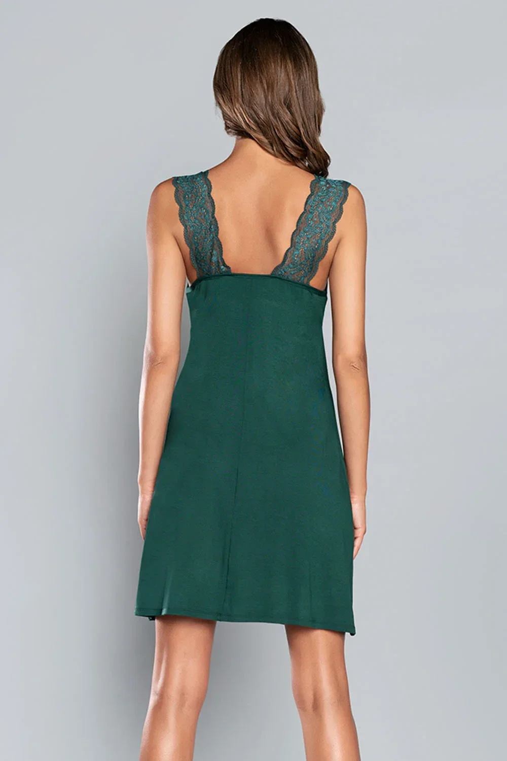 Noční košile značky Italian Fashion. Model Samaria sz.r. Výrobek je vyroben z 90 % z viskózy, 10 % z elastanu. Vlastnosti výrobku: elegantní viskózová krajka. dámský výrobek. typ výstřihu: špičatý.