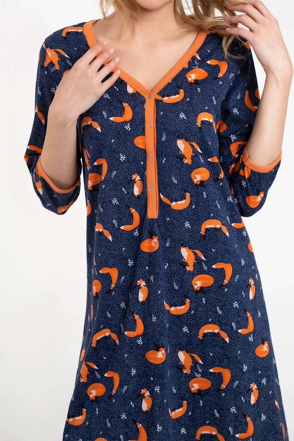 Noční košile značky Italian Fashion. 3/4 velikost modelu Wasilla. Výrobek je vyroben ze 100% bavlny. Těhotenské oblečení. Místo zapínání: vpředu. Noční košile se zapíná na patentky. Délka rukávů: 3/4. Délka: midi. Dámské oblečení. Typ výstřihu: výstřih do V.