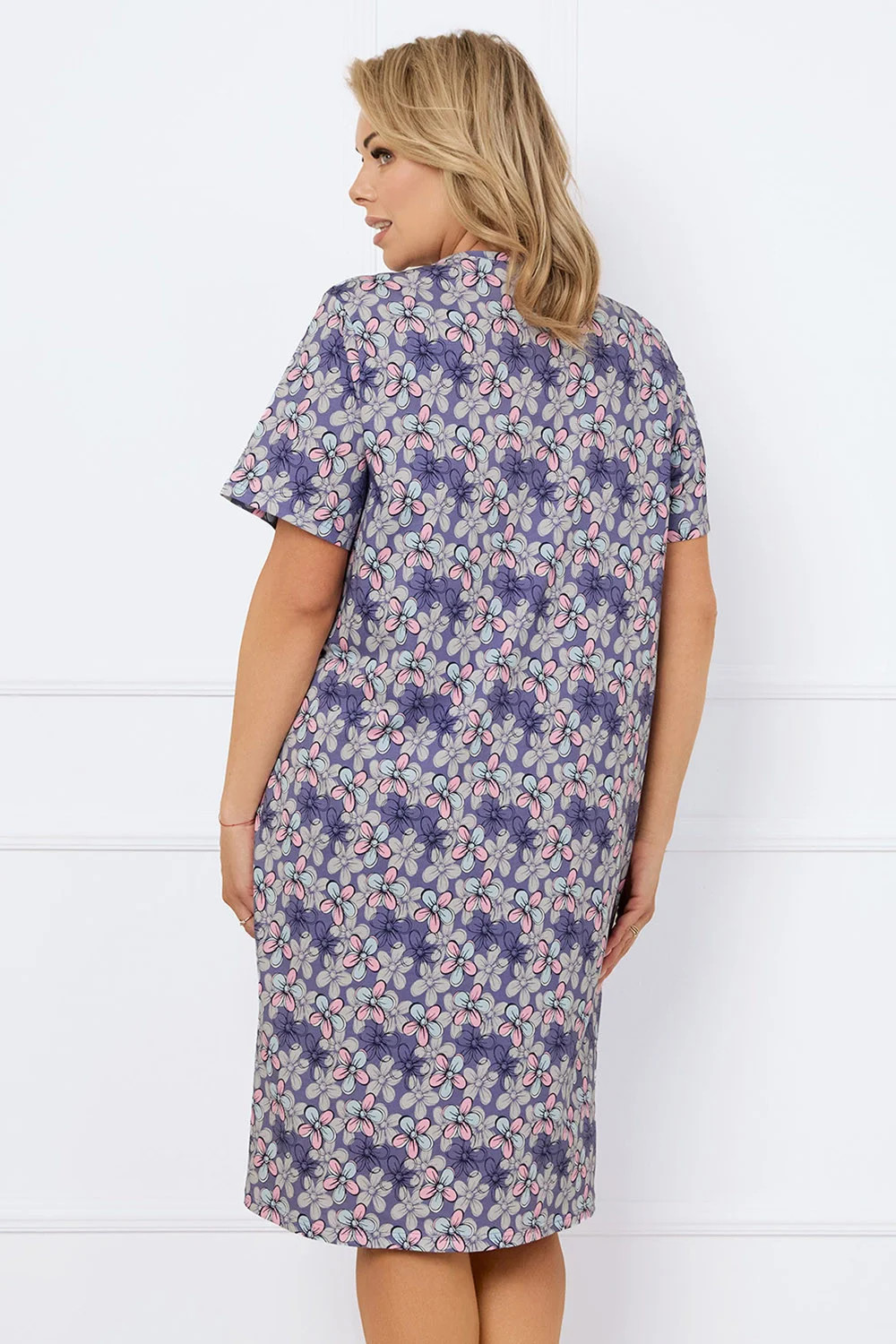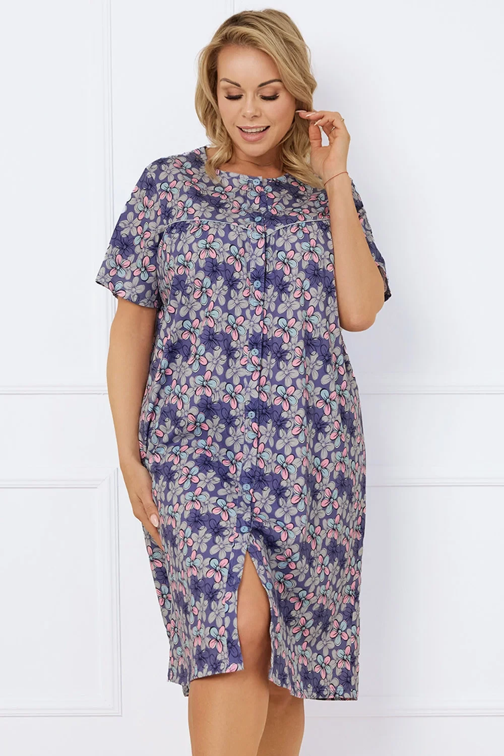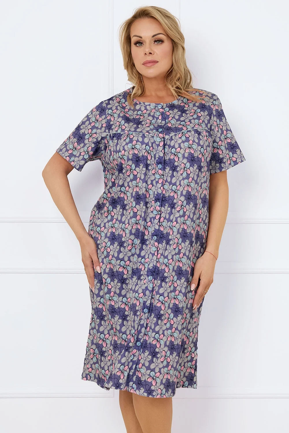 Noční košile italské módy. model Bonaria cr.r. výrobek je vyroben ze 100% bavlny. místo zapínání: vpředu. noční košile se zapíná na knoflíky. délka rukávu: krátký. délka: midi. dámský výrobek. typ výstřihu: kulatý.