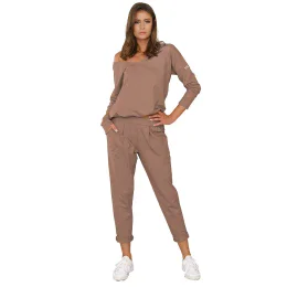 Tepláková souprava italské módy. model Karina s dlouhým rukávem. výrobek je vyroben z 95 % bavlny, 5 % elastanu. má kapsy. délka rukávu: dlouhý rukáv. délka: dlouhá. dámský výrobek. typ výstřihu: výstřih do V.