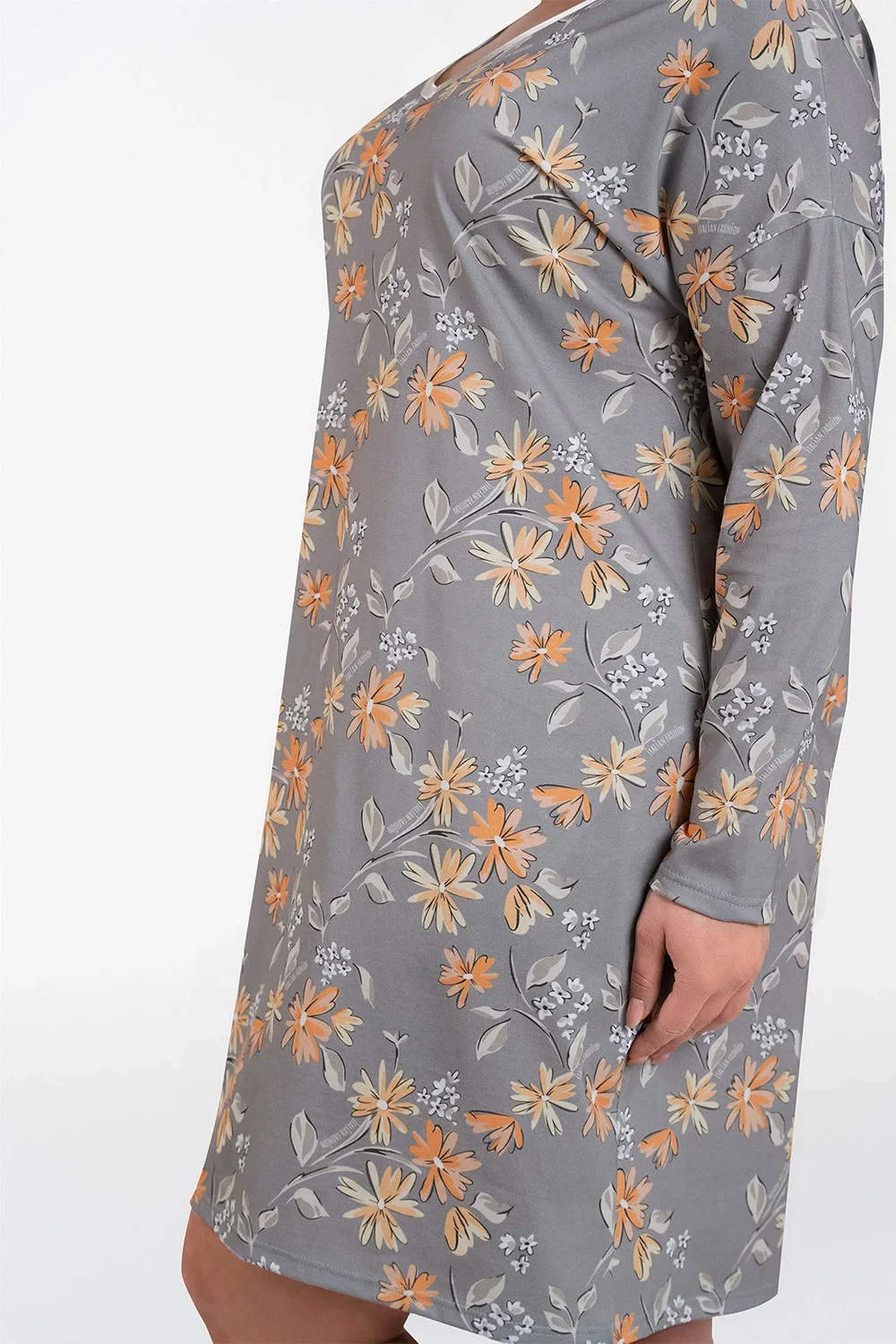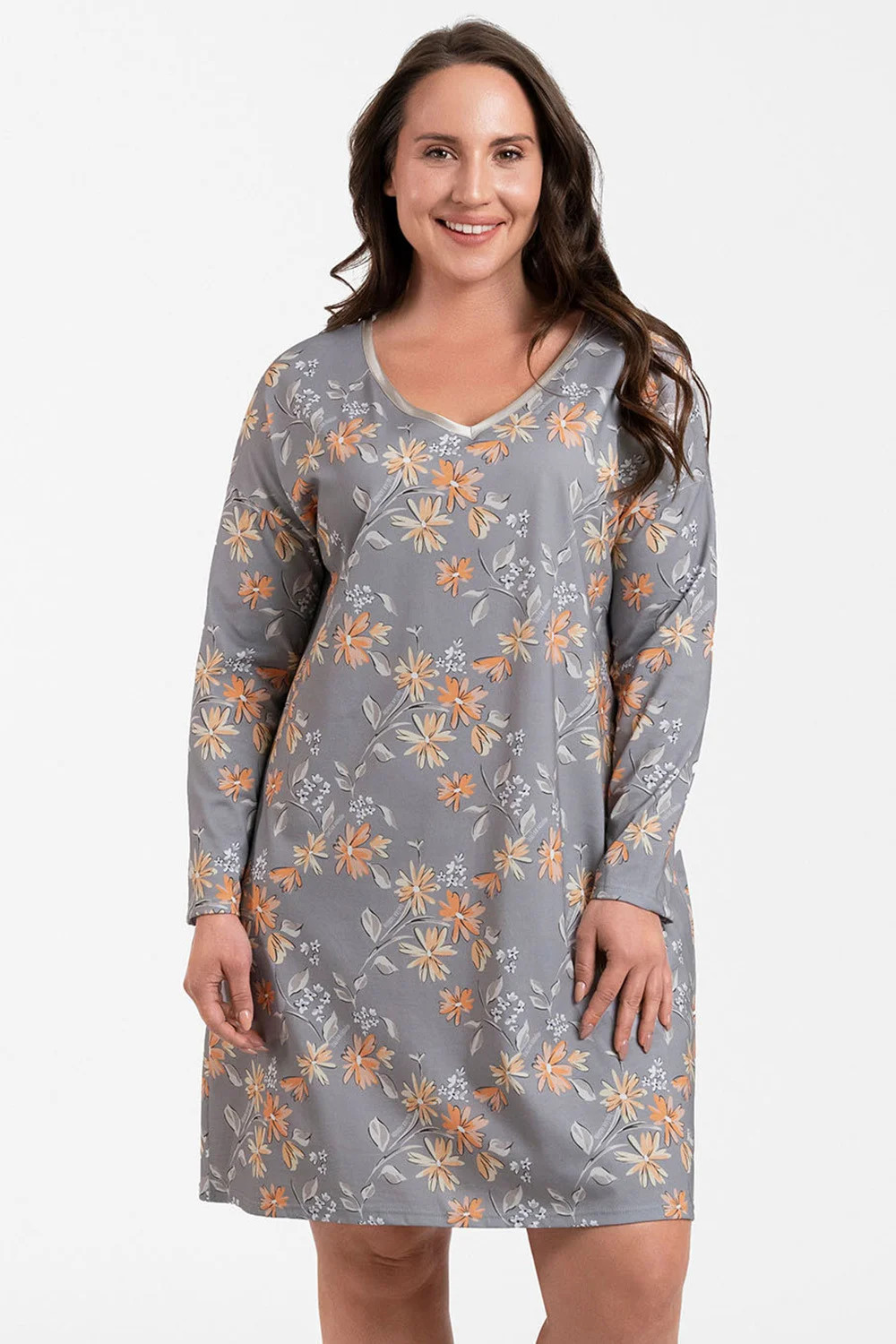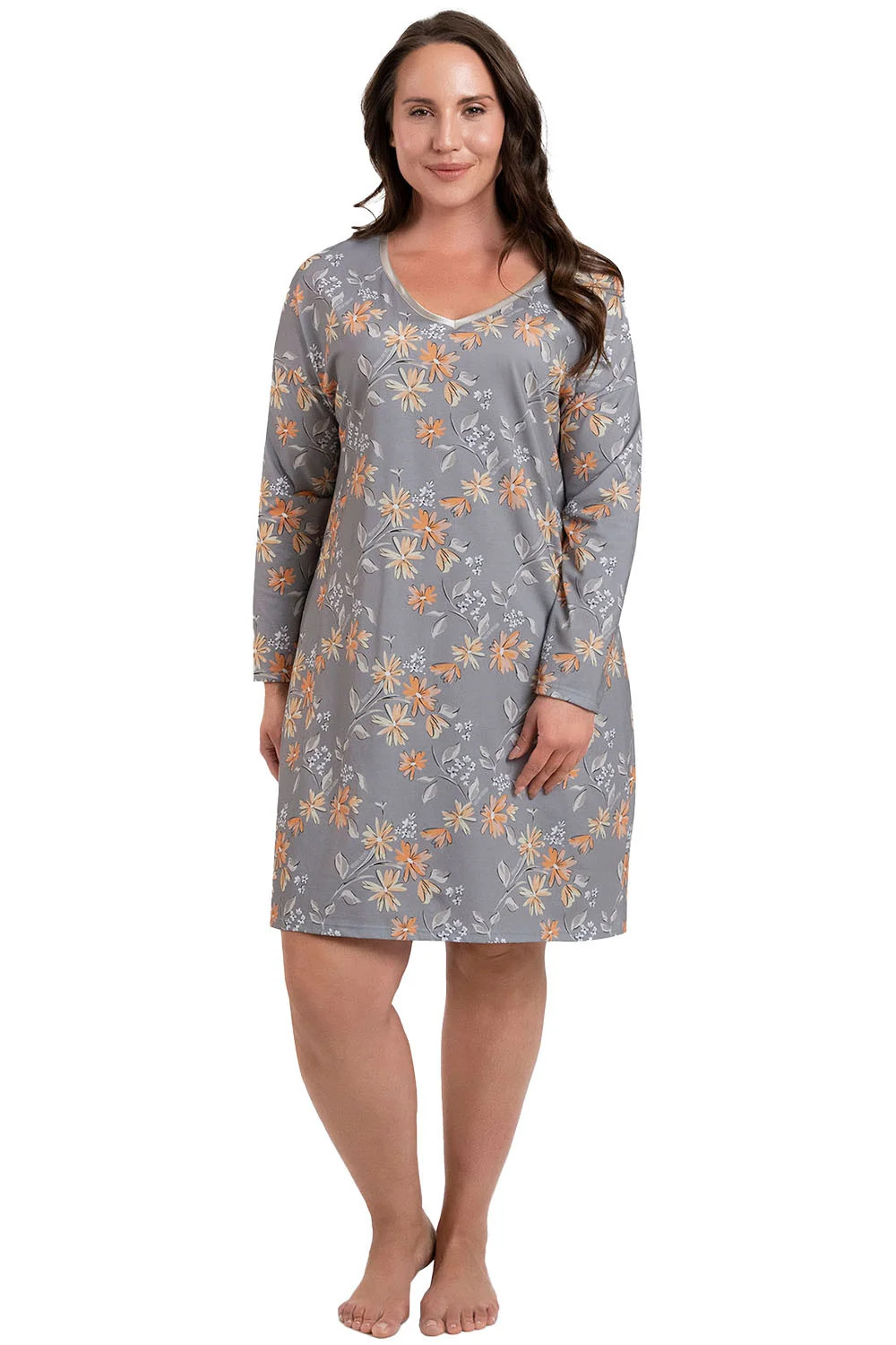 Noční košile italské módy. model Kasos long. výrobek je vyroben ze 100% bavlny. délka rukávu: dlouhý rukáv. délka: midi. dámské oblečení. typ výstřihu: ve tvaru srdce.