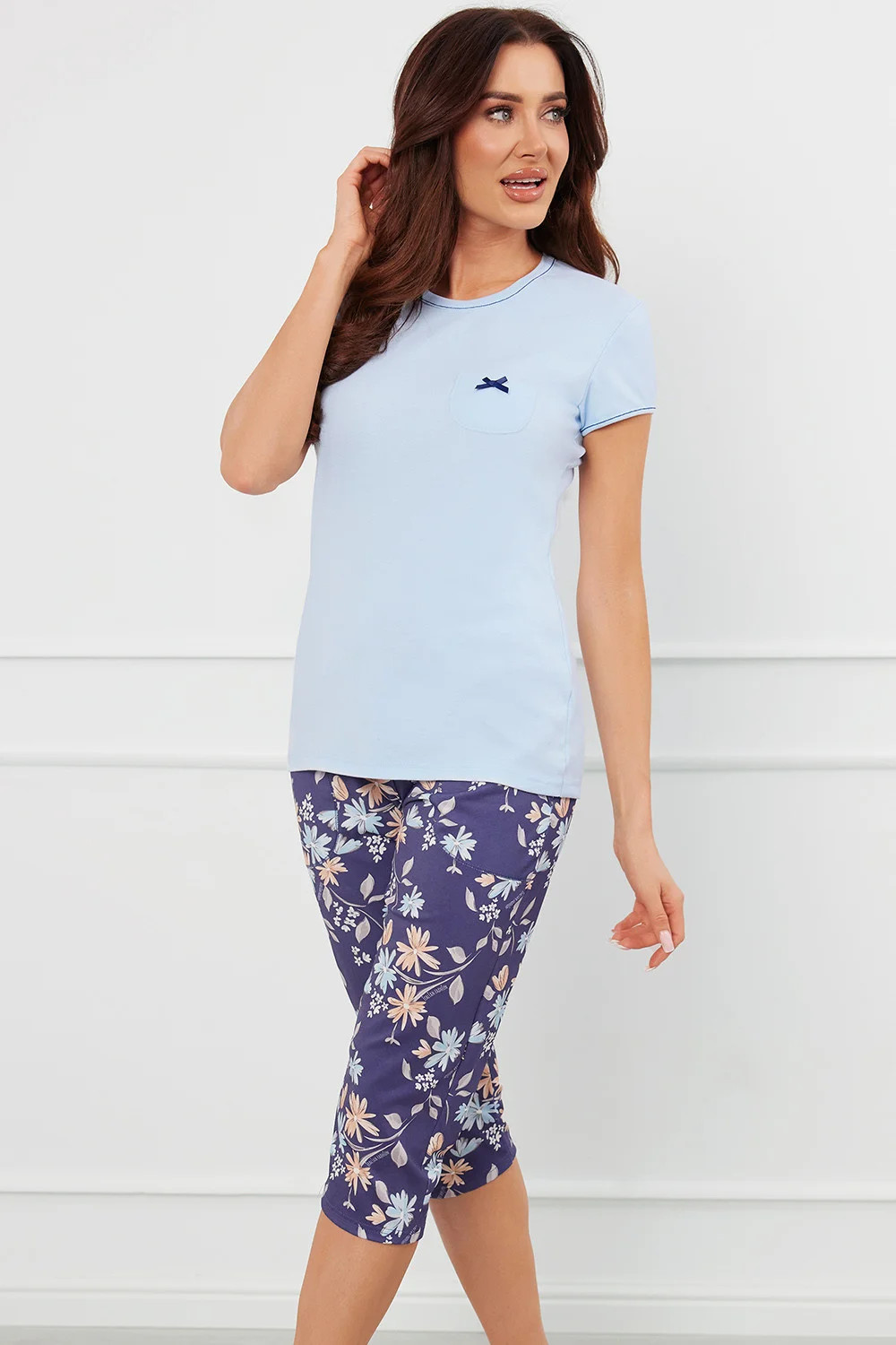 Noční košile italské módy. model Pulia cr.r. sp.3/4. Výrobek je vyroben ze 100% bavlny. má kapsy. délka rukávu: krátký. délka: 3/4. dámský výrobek. typ výstřihu: kulatý.