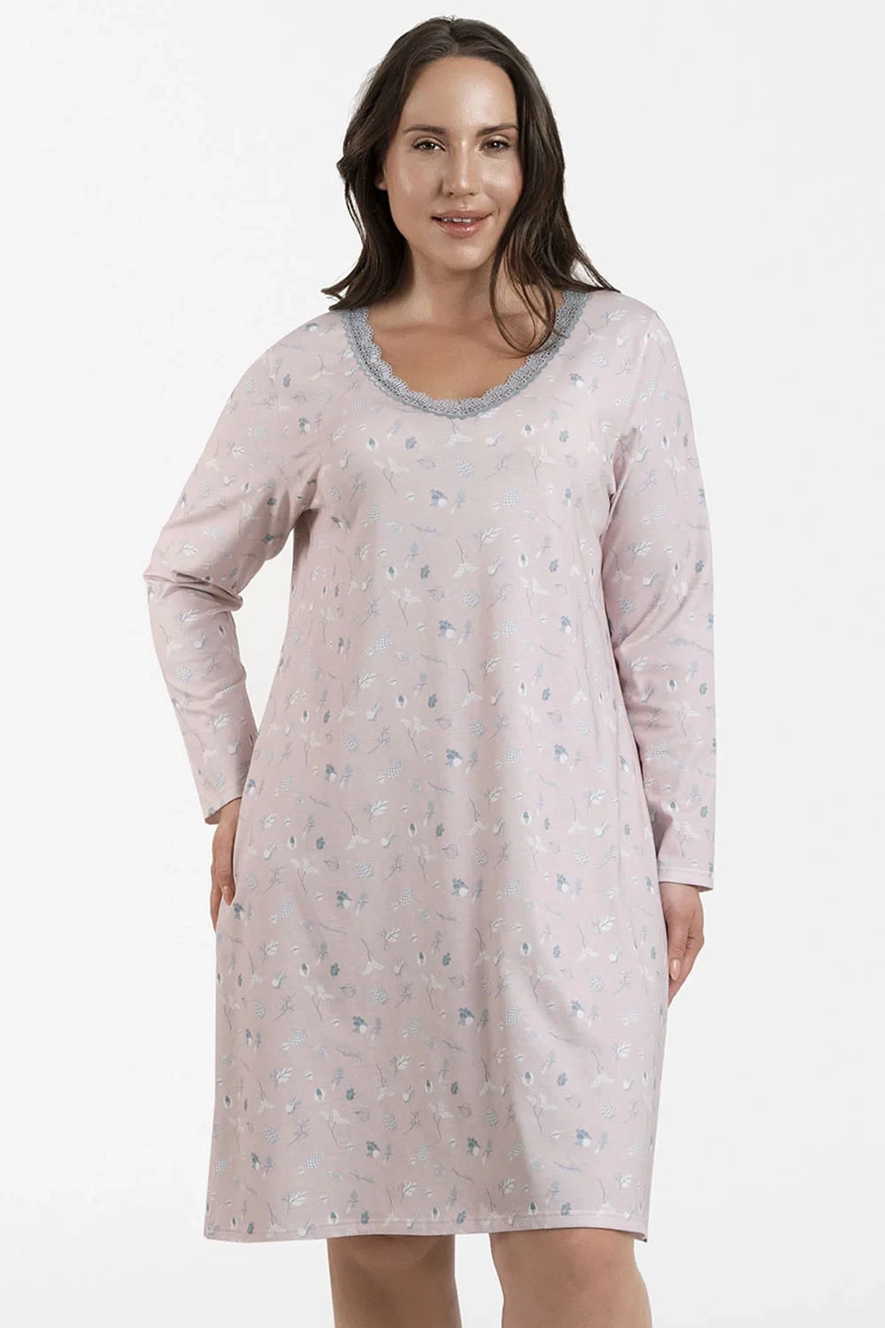 Noční košile italské módy. dlouhý model Simona. výrobek je vyroben ze 100% bavlny. délka rukávu: dlouhý rukáv. délka: midi. dámské oblečení. typ výstřihu: ve tvaru srdce.