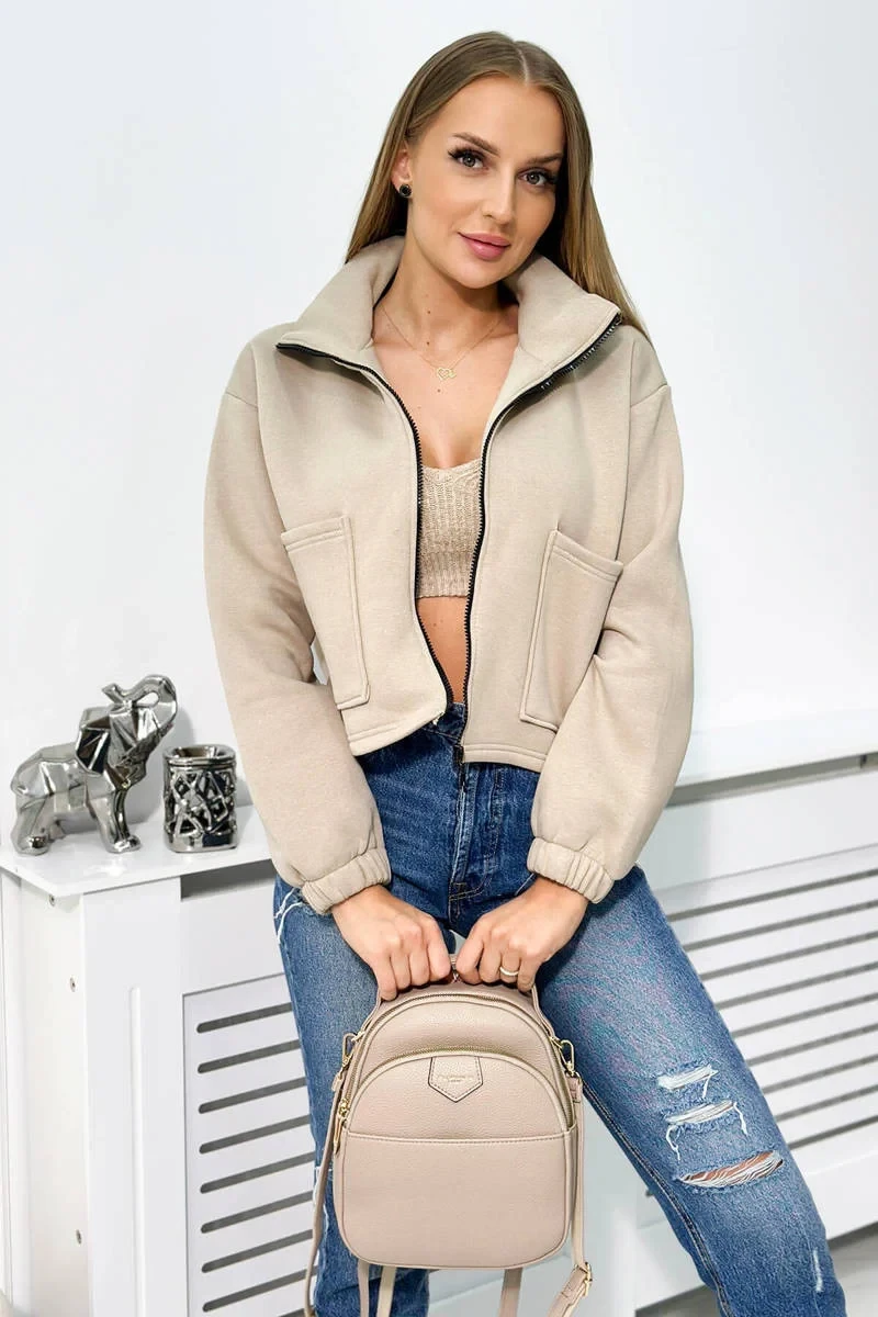 Izolovaná bavlněná mikina se zipem světle béžová