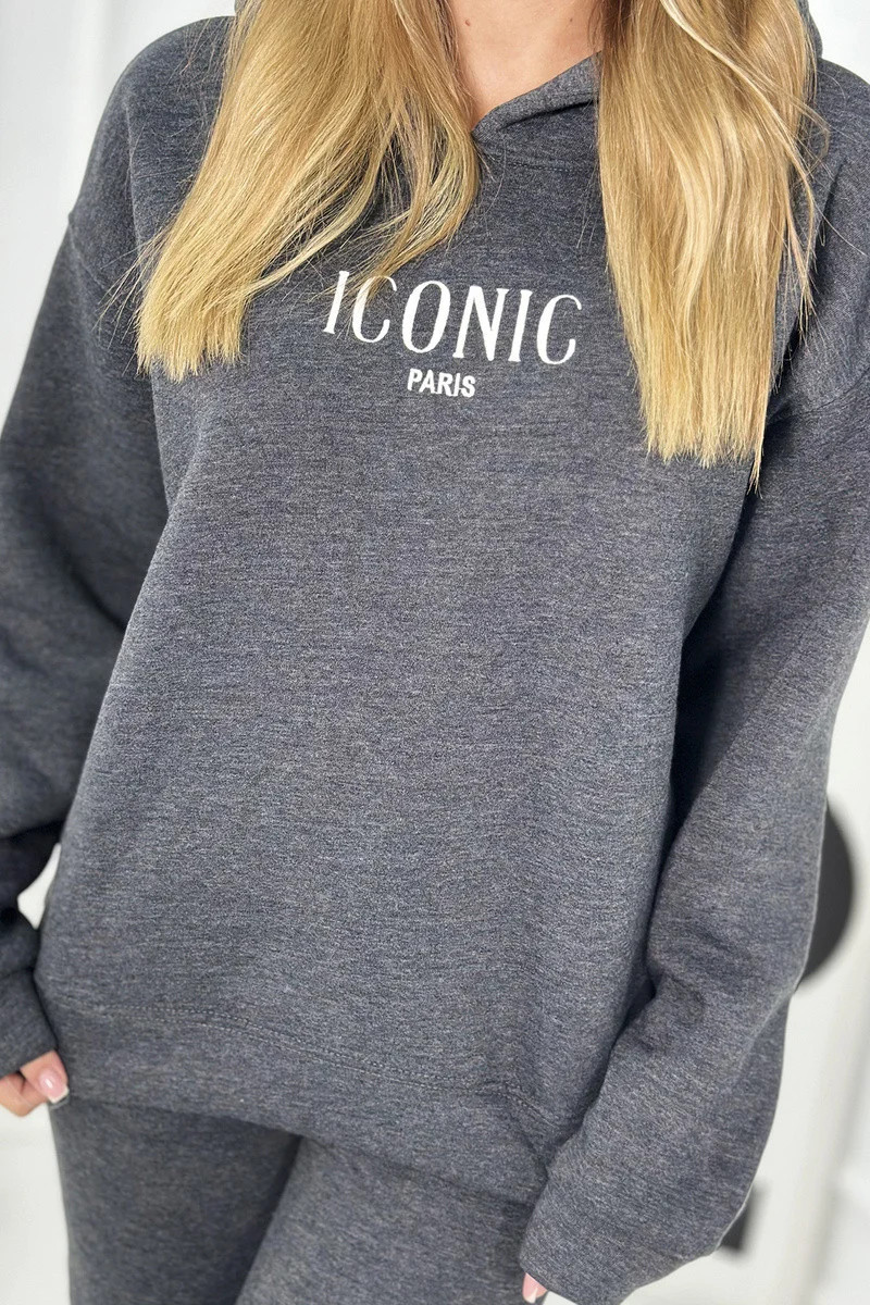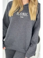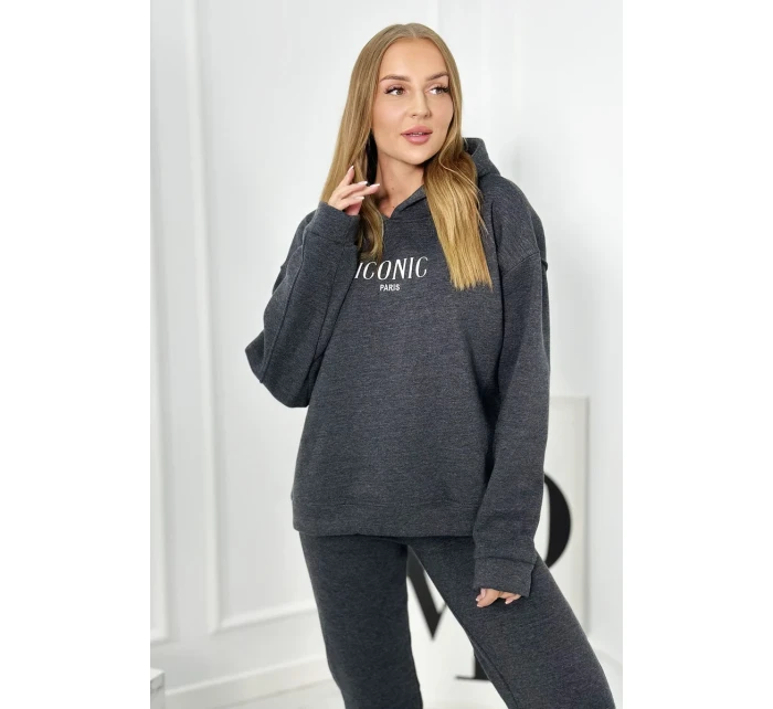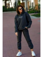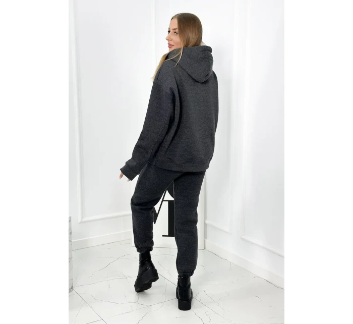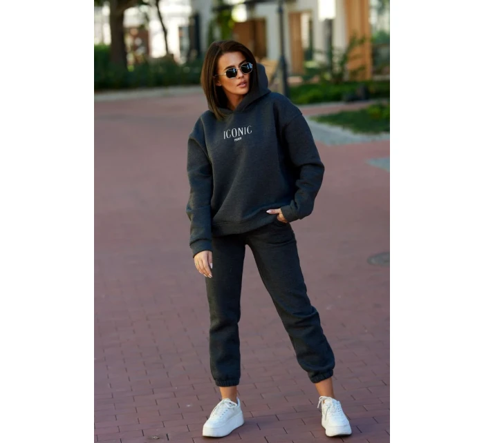 Izolovaná bavlněná souprava, mikina s vyšívacími + kalhotami Grafit