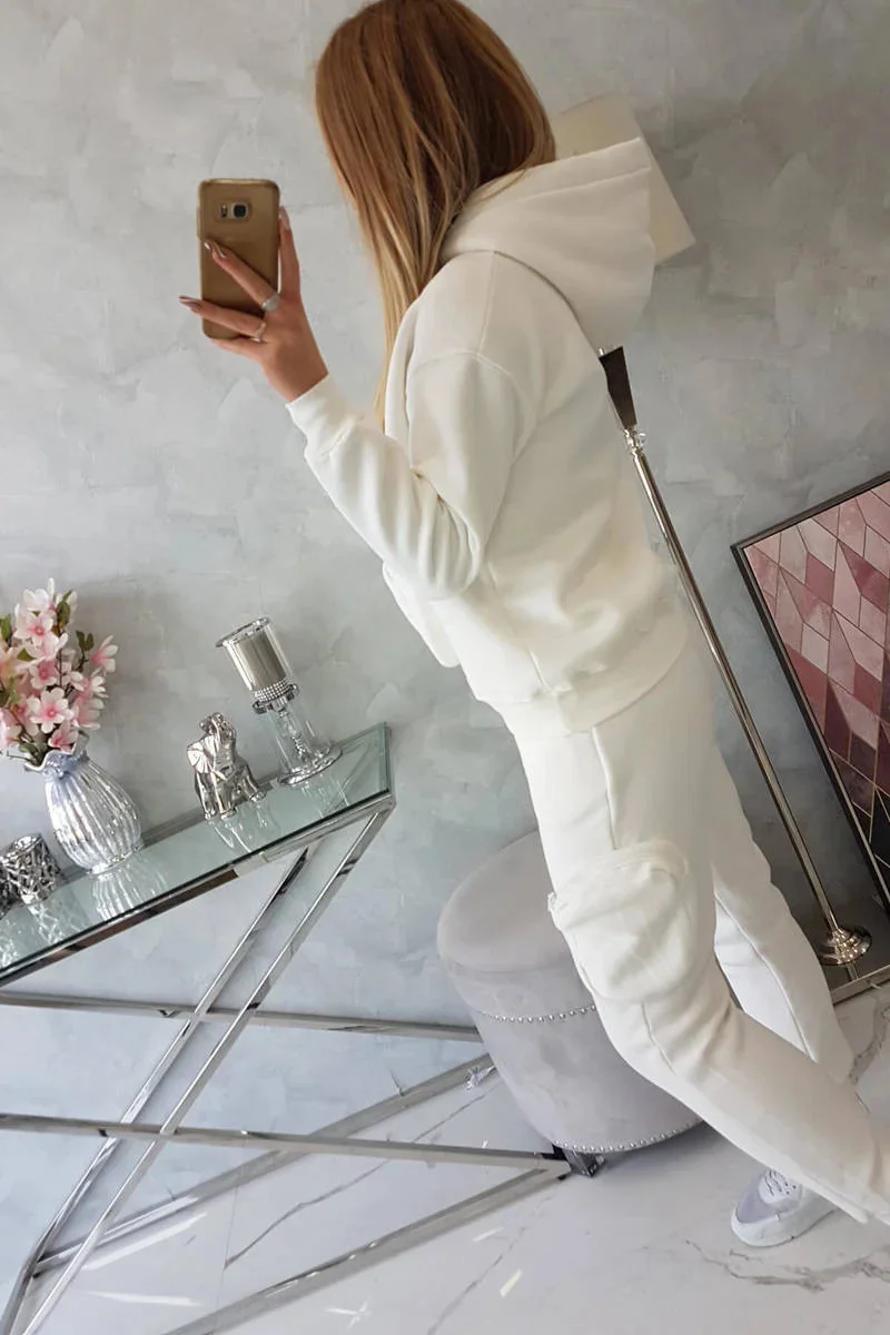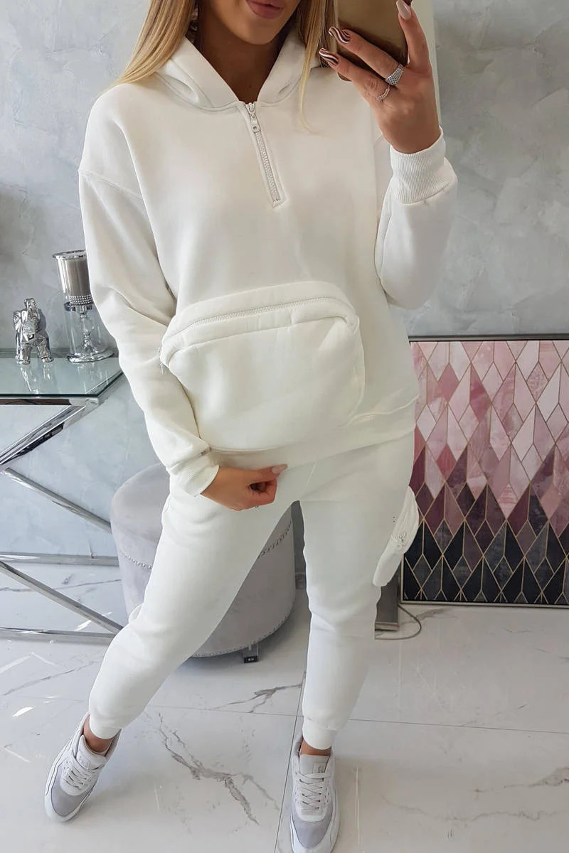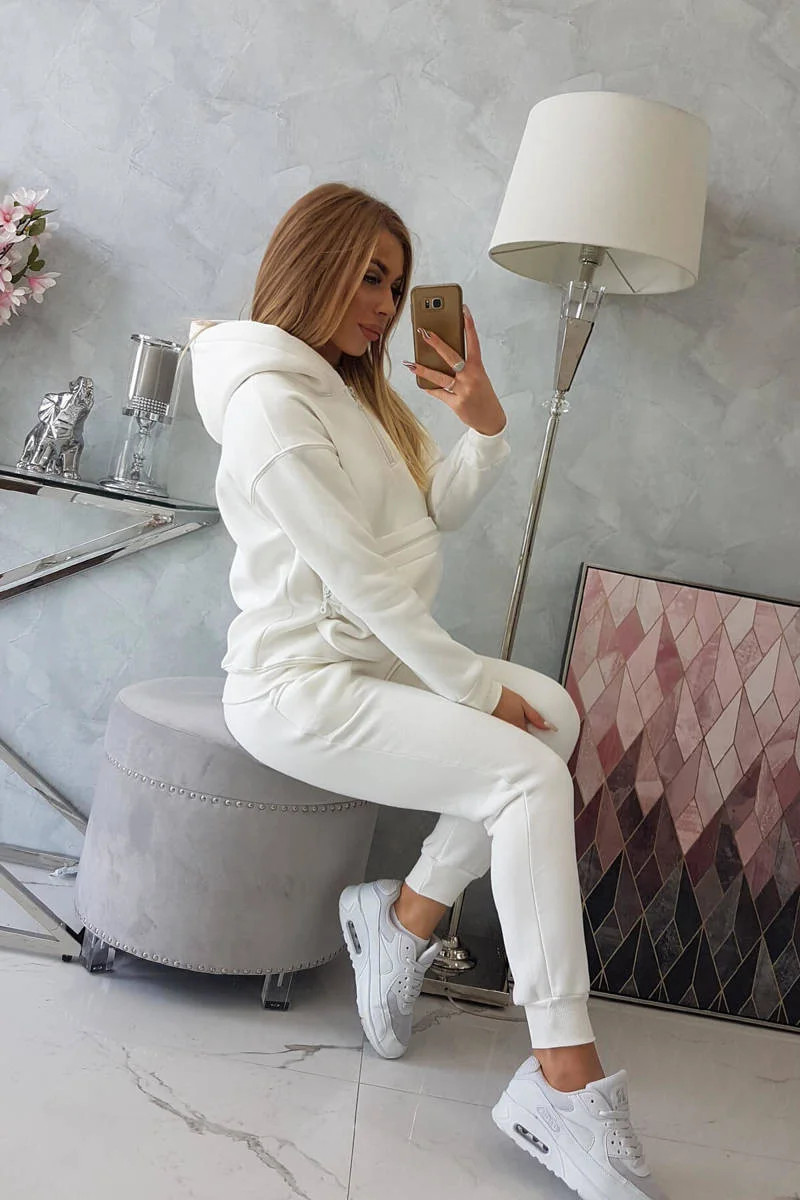 Představujeme vám sadu mikiny a kalhot s nápisem. Mikina má kapuci a našitou kapsu na přední straně. Sada je vyrobena z izolovaného materiálu. Velikost je univerzální a vyhovuje dámám velikosti S, M nebo L.