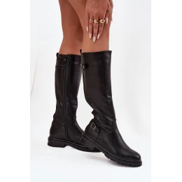 Izolované dámské kozačky na nízkém podpatku s přezkami Černé Sorelle